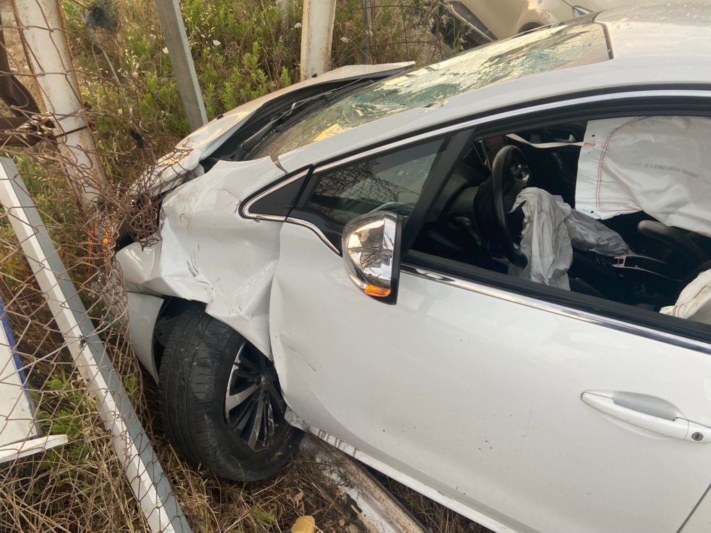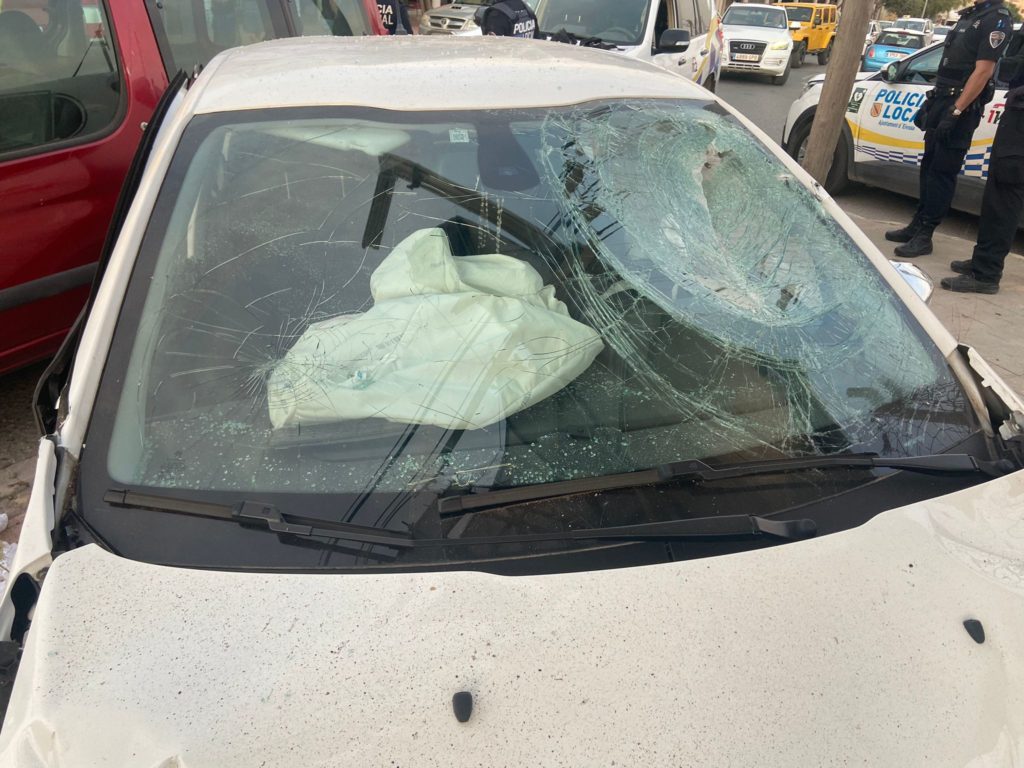 El conductor fugado perdió el control del vehículo, se subió a un bordillo y salió disparado por los aires «impactando contra un coche estacionado y una valla publicitaria», recuerda la policía. Esto ocurrió junto al Tapa Tapa, al lado de la rotonda de la carretera del aeropuerto.