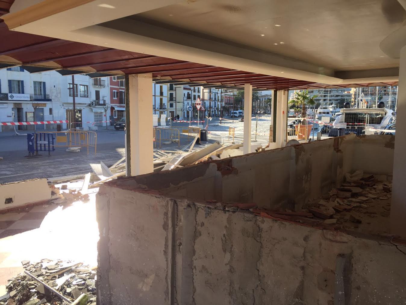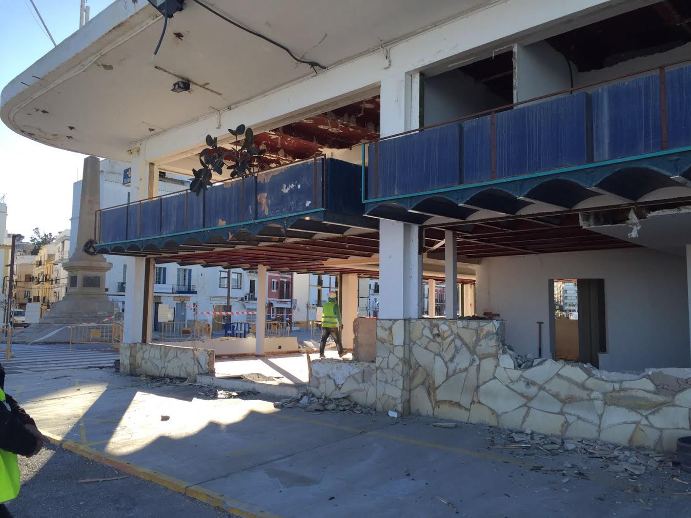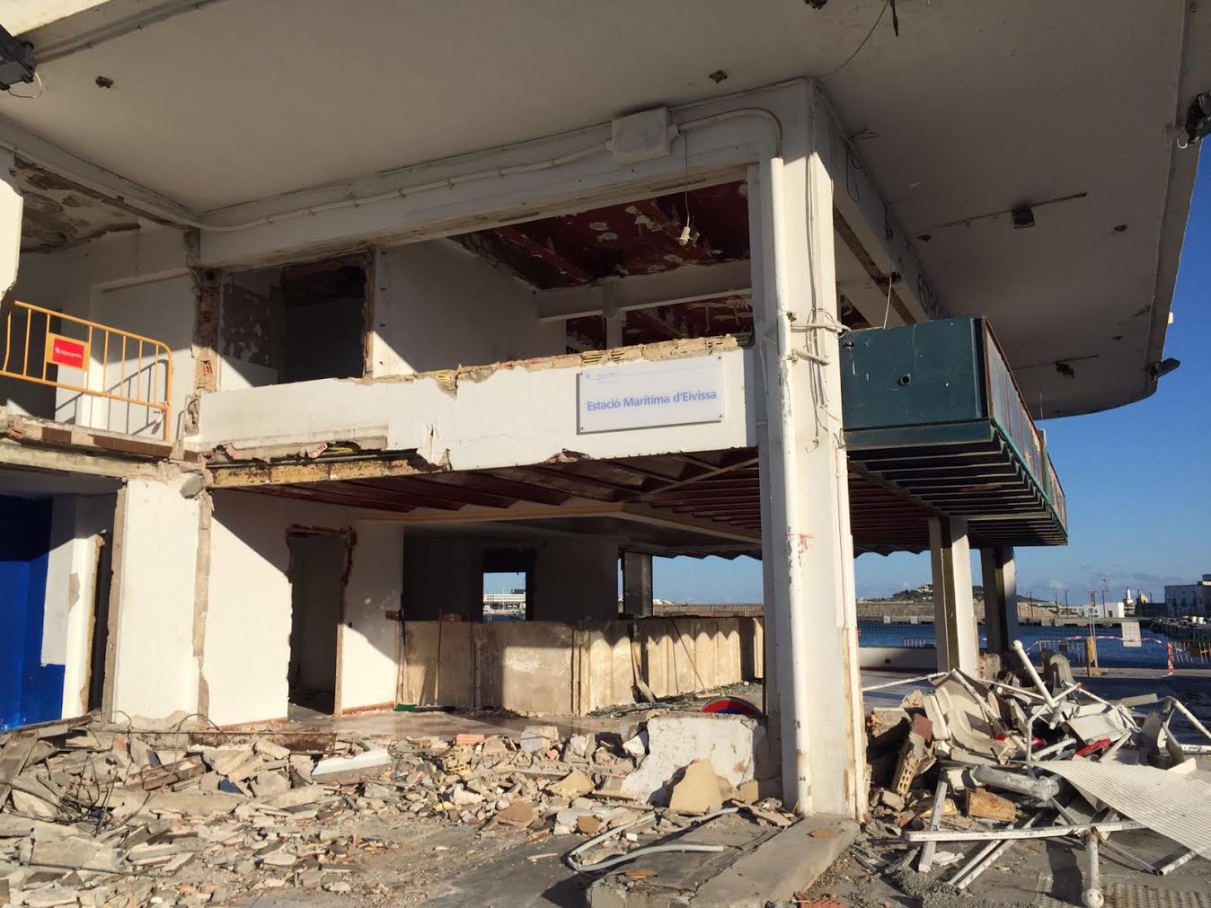 Y es que si el lunes la empresa Isolux Corsán, adjudicataria de las obras de derribo de la antigua estación marítima del puerto de Ibiza, comenzó los trabajos previos a la demolición de la estructura del edificio ubicado en es Martell, hoy el inmueble ya presentaba otra imagen. La imagen previa a una edificación lista para ser derribada para siempre y dejar paso a una nueva plaza pública en la que se incorporará un nuevo edificio para dar servicio a las marinas que existen en el lugar.