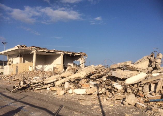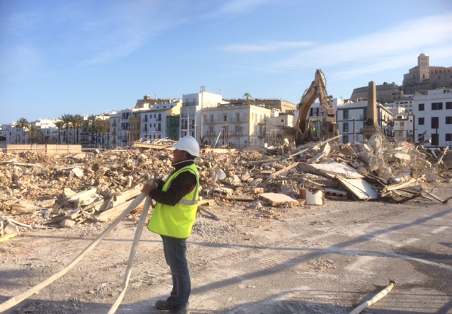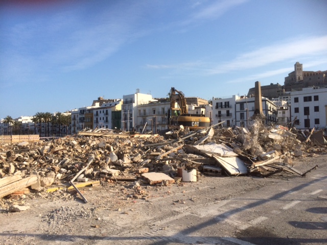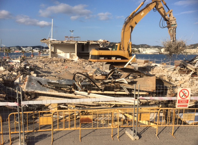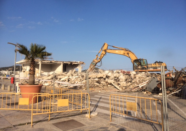 Lo hacía ya moviéndose por encima de los escombros en los que ha quedado reducida la mayor parte de la antigua estación marítima de Vila.