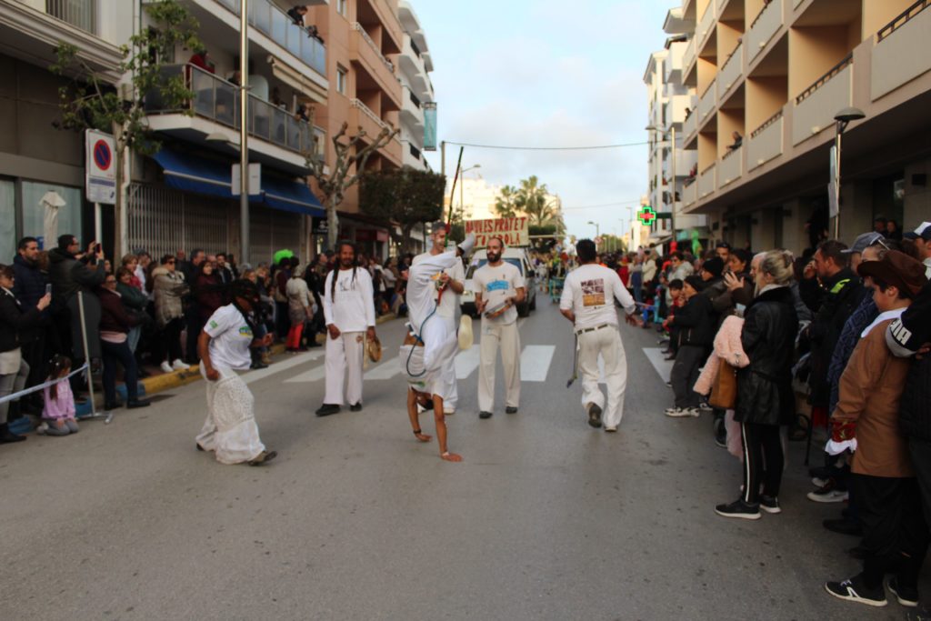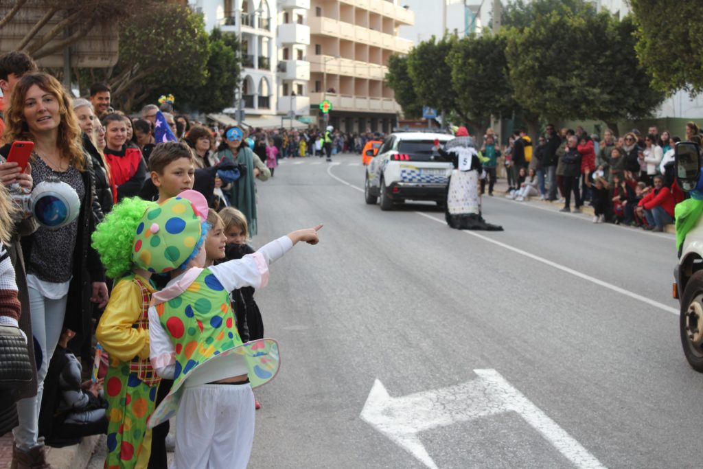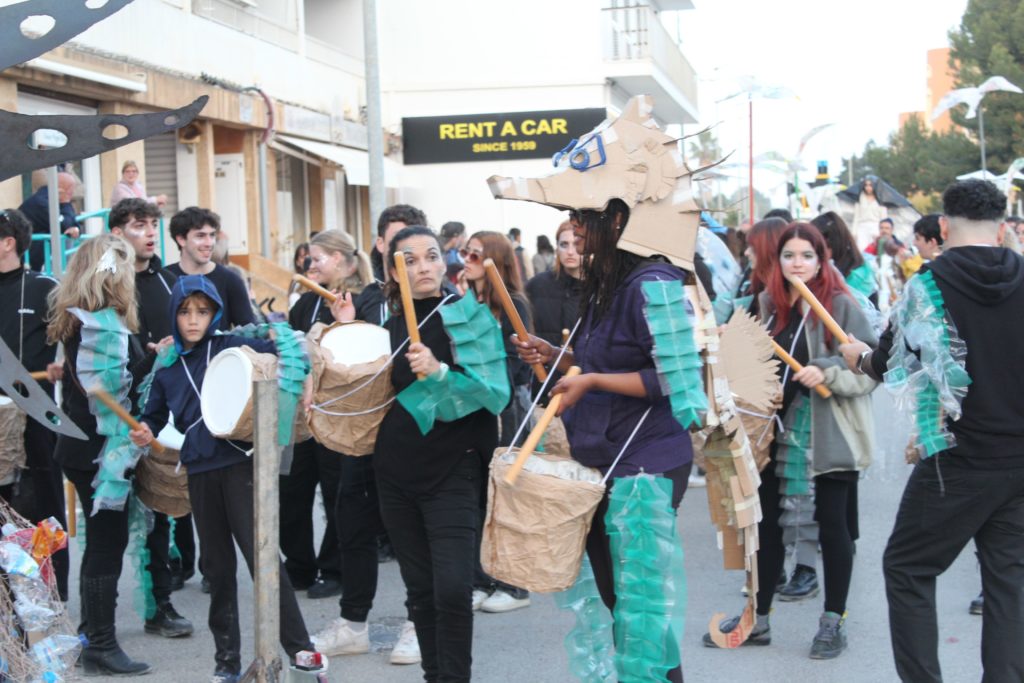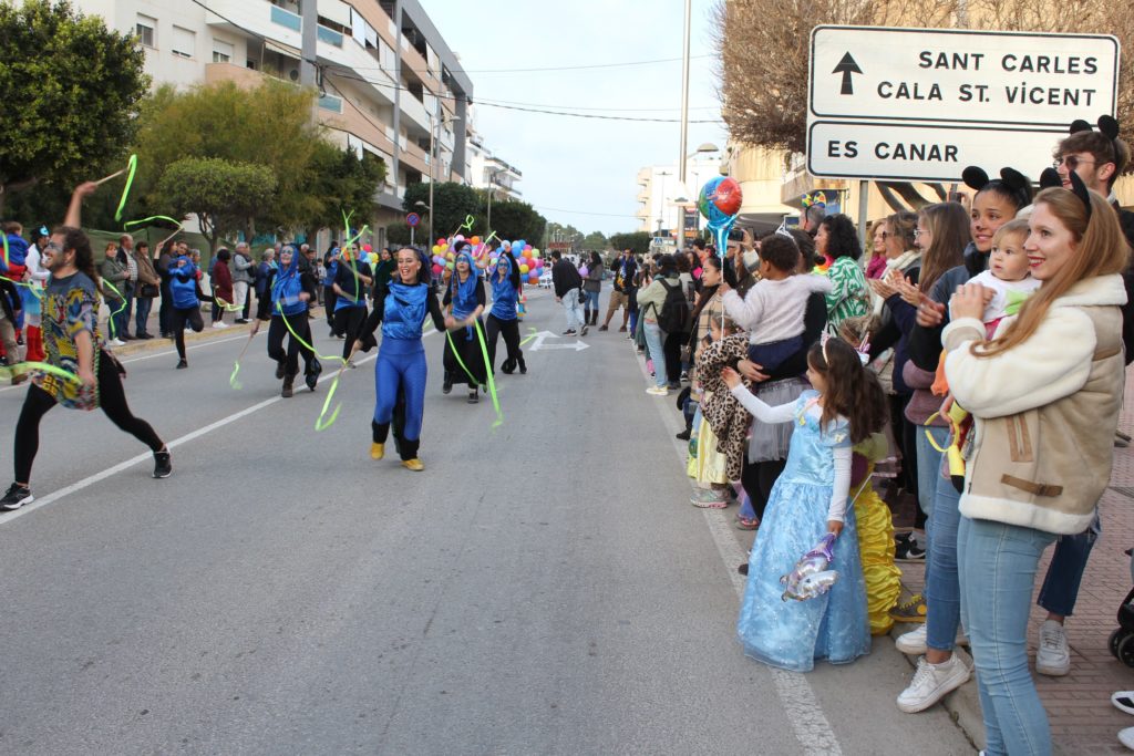 La Rúa de Carnaval de esta tarde en Santa Eulària ha sido una de las más multitudinarias que se recuerdan, tanto por el número de participantes que han desfilado (unas 1.100 personas distribuidas en 22 inscripciones en las diferentes categorías), como por la presencia de público en las aceras viendo el desfile que ha recorrido algunas de las principales calles.