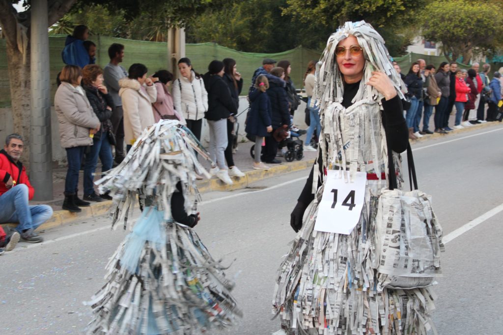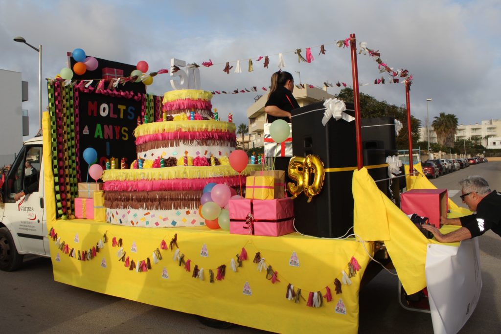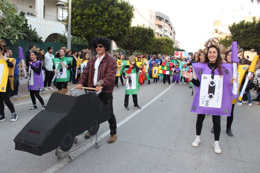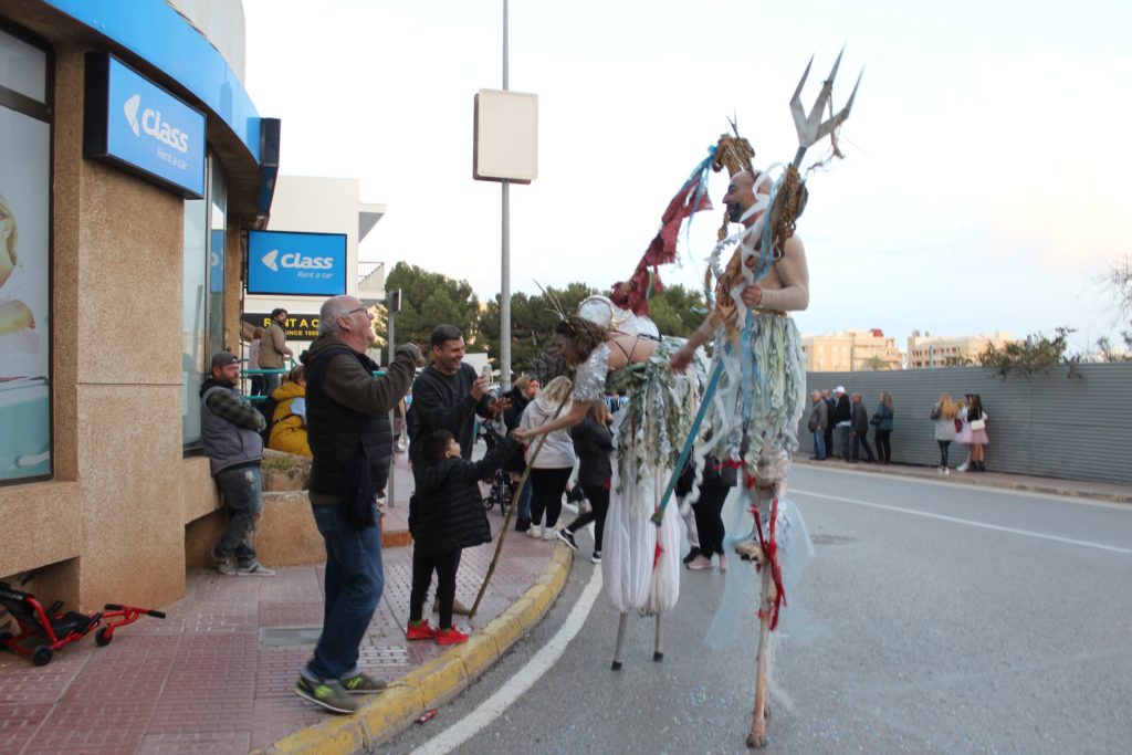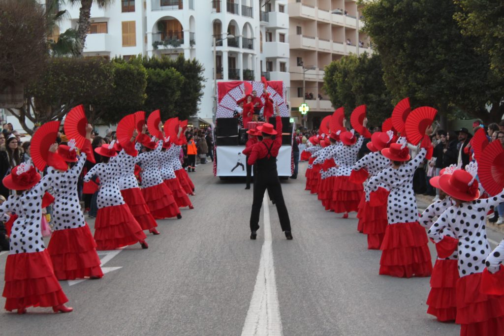 La Rúa de Carnaval de esta tarde en Santa Eulària ha sido una de las más multitudinarias que se recuerdan, tanto por el número de participantes que han desfilado (unas 1.100 personas distribuidas en 22 inscripciones en las diferentes categorías), como por la presencia de público en las aceras viendo el desfile que ha recorrido algunas de las principales calles.