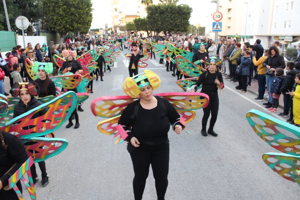 Academias de baile, asociaciones de vecinos, colegios y algunos particulares han protagonizado una Rúa llena de ritmo, alegría y mucha imaginación para la creación y confección de los disfraces.