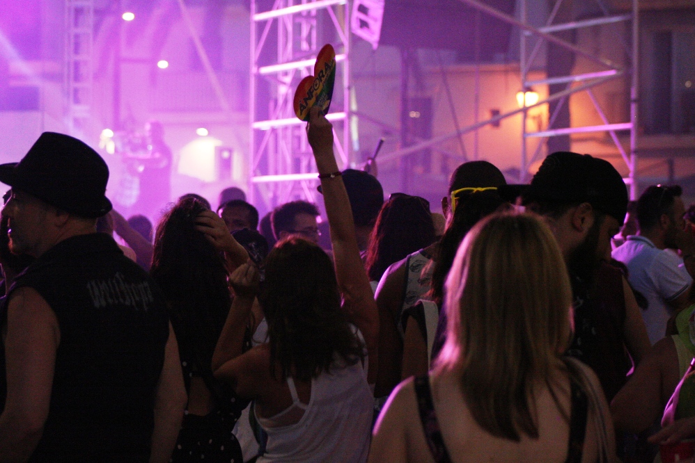 Sobre las nueve y media los distintos vehículos fueron llegando al escenario situado en el puerto. Kike Sarasola y Carlos Marrero, padrinos del Ibiza Gay Pride, realizaron un corto discurso y, poco después, todo fue música de los años 80 y 90, con todos los asistentes moviéndose al ritmo de Tini Casal, Olé Olé y Objetivo Birmania, entre otros. La fiesta continuó con Rebeka Brown y siguió hasta el amanecer en Privilege y Ánfora.