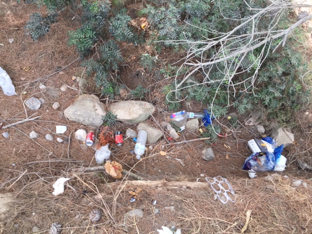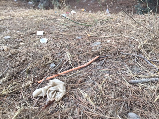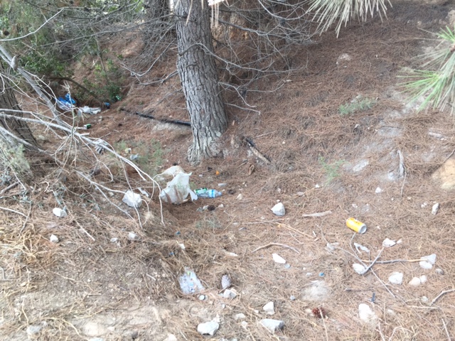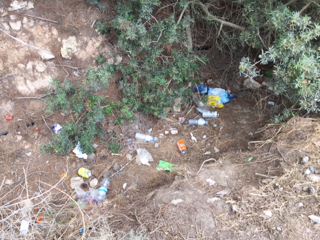 «La cortan en el maletero de los coches y tiran ahí toda la basura. Pero no sólo es culpa de ellos, porque cada mañana hay gente durmiendo en furgonetas y caravanas, que tiran ahí la basura que generan», asegura la autora de las fotos.