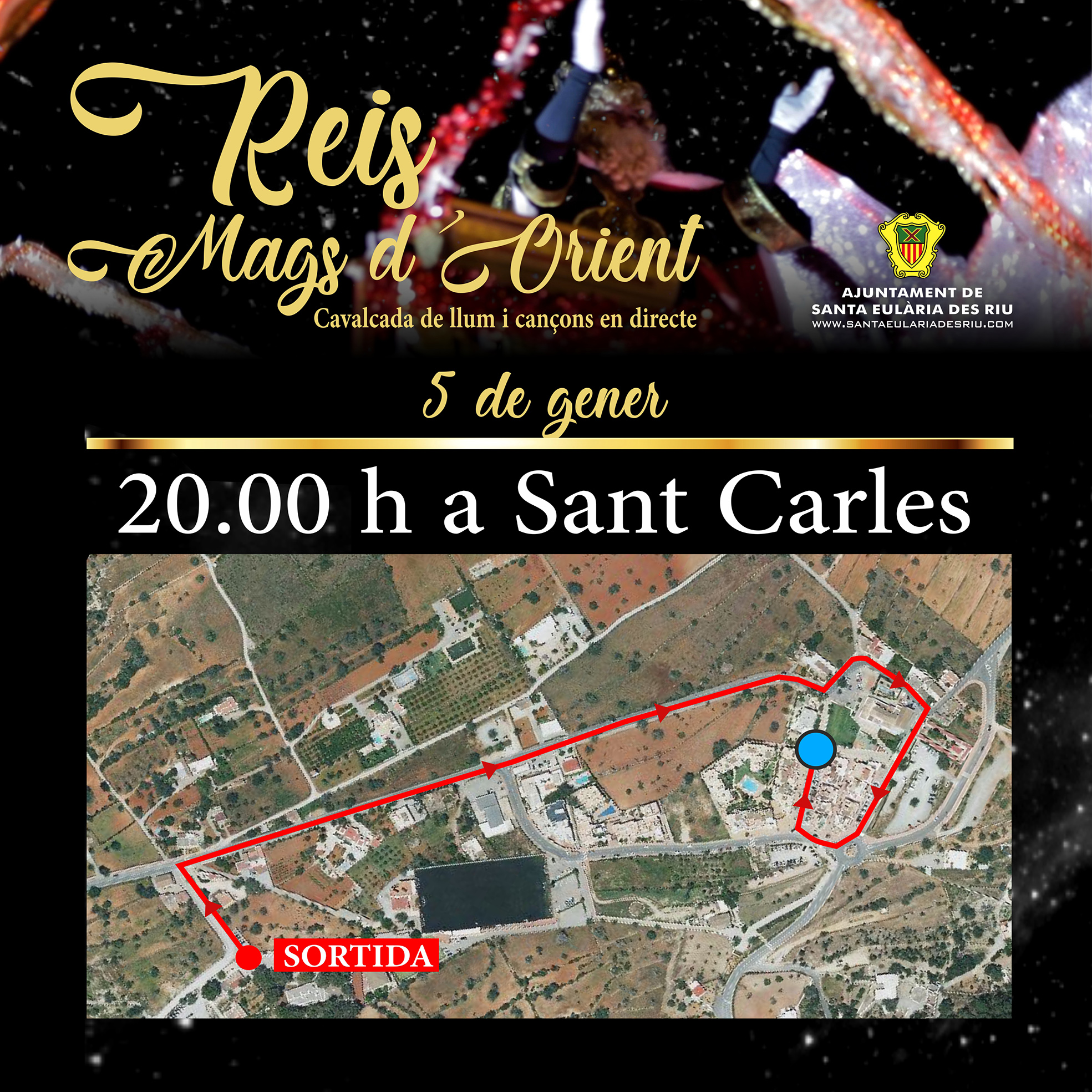 Santa Gertrudis también tendrá visita de los Reyes Magos. Será a las 19 horas. A Sant Carles llegarán una hora después, a las 20 horas, y también entregarán regalos.