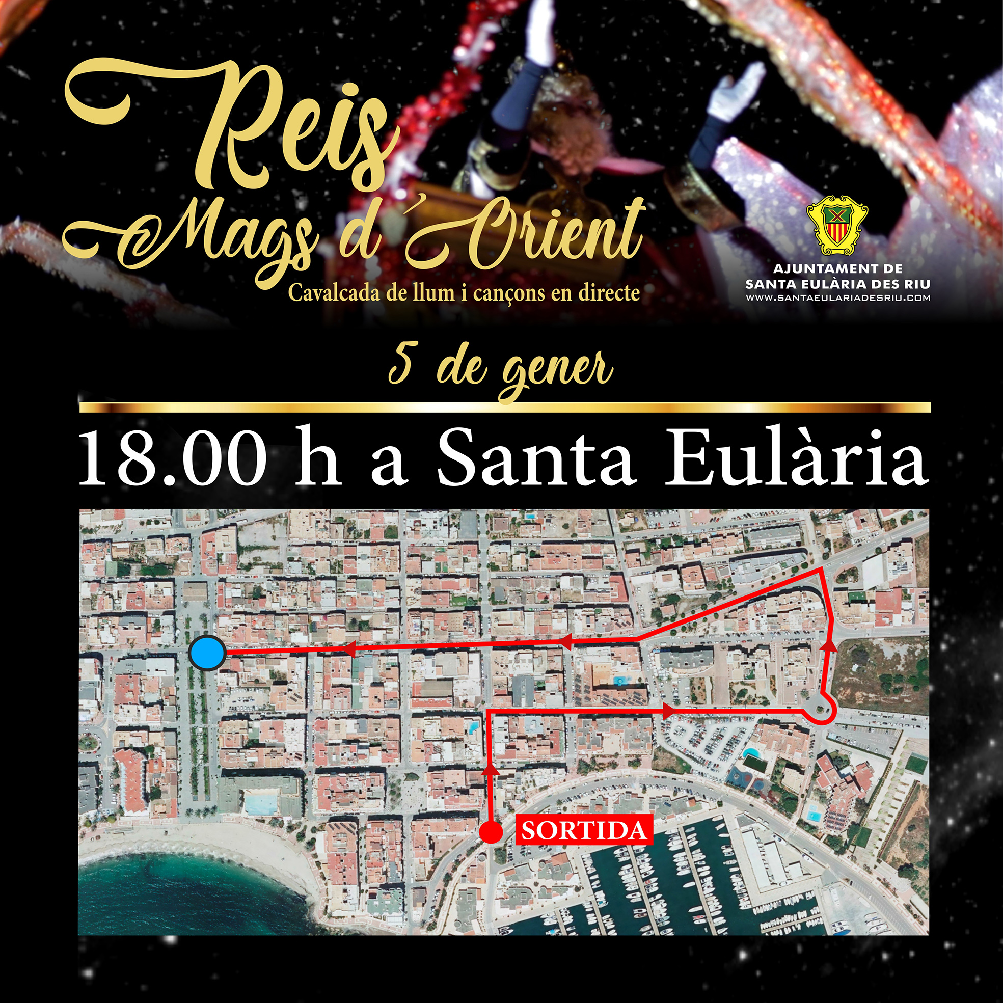 Por su parte, los Reyes Magos desembarcan este jueves 5 de enero en la escuela de vela de Santa Eulària, desde donde se desplazarán por el centro del municipio a partir de las 19 horas, atravesando las calles Sant Llorenç, Sant Joan, José Guasch Vich y Sant Jaume con parada en la capilla de Lourdes para la adoración de Niño Jesús. Finalizarán en la plaza de España a las 20 horas donde repartirán los regalos a las familias que así lo han organizado.