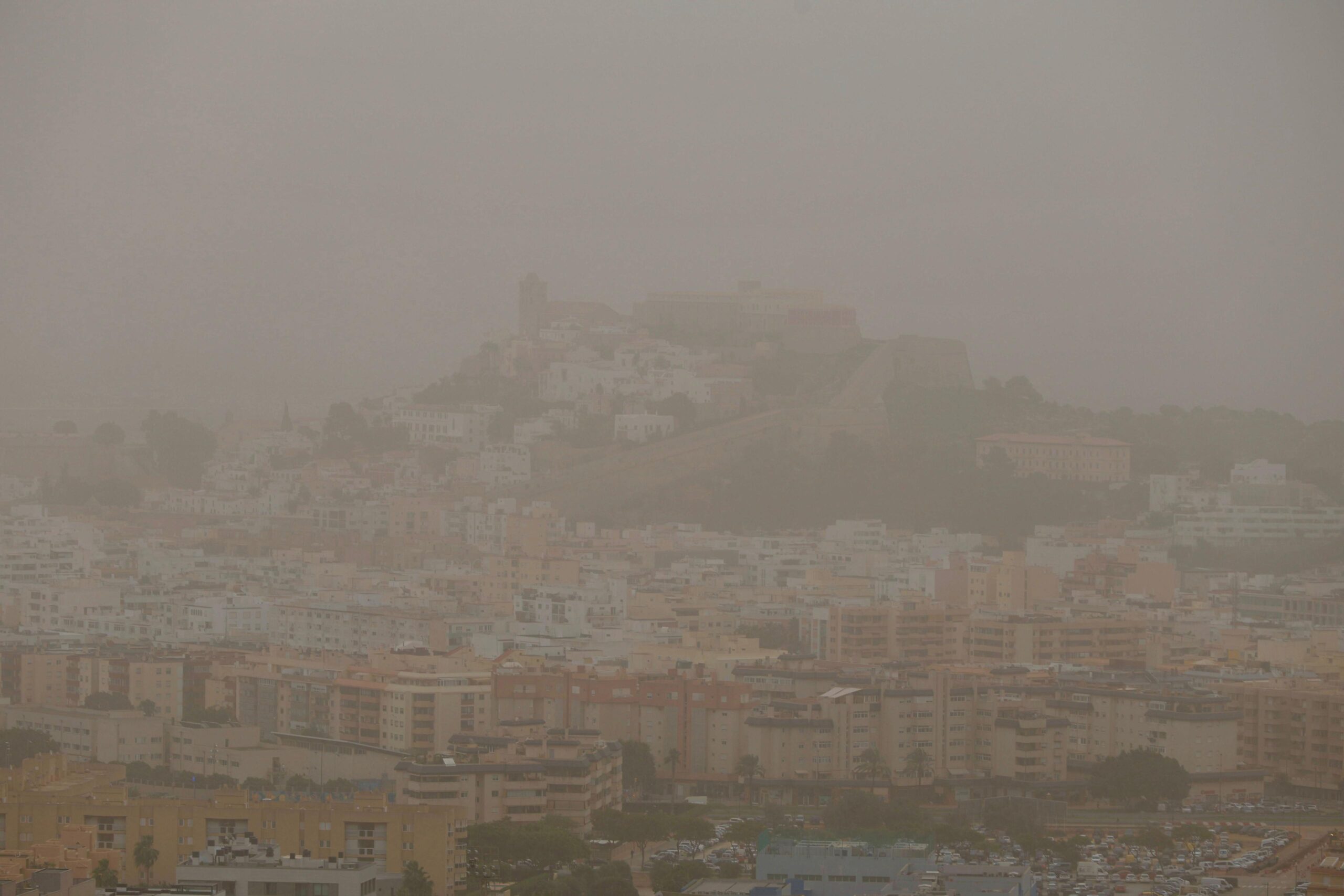 Esta intrusión de polvo mineral está dejando imágenes impactantes, como la que acompaña este artículo y que ha sido captada desde el mirador de Cas Mut: la ciudad de Ibiza se encuentra prácticamente difuminada por la niebla, Dalt Vila a penas es una silueta y, evidentemente, el mar y Formentera han desaparecido completamente.