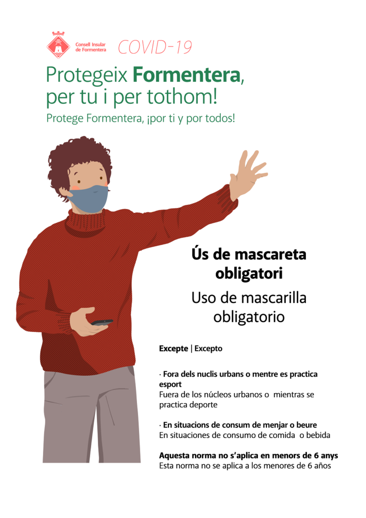 «Protegeix Formentera, per tu i per tothom!», és l’eslògan de la campanya on s’assenyalen les principals normatives per evitar la propagació de la covid-19 a l’illa: Ús obligatori de mascareta, metres de distància, higiene freqüent de mans. Els protagonistes de la campanya s’han vestit d’hivern per recordar que encara hem de seguir respectant aquestes mesures. La campanya es difondrà a través de les xarxes socials.