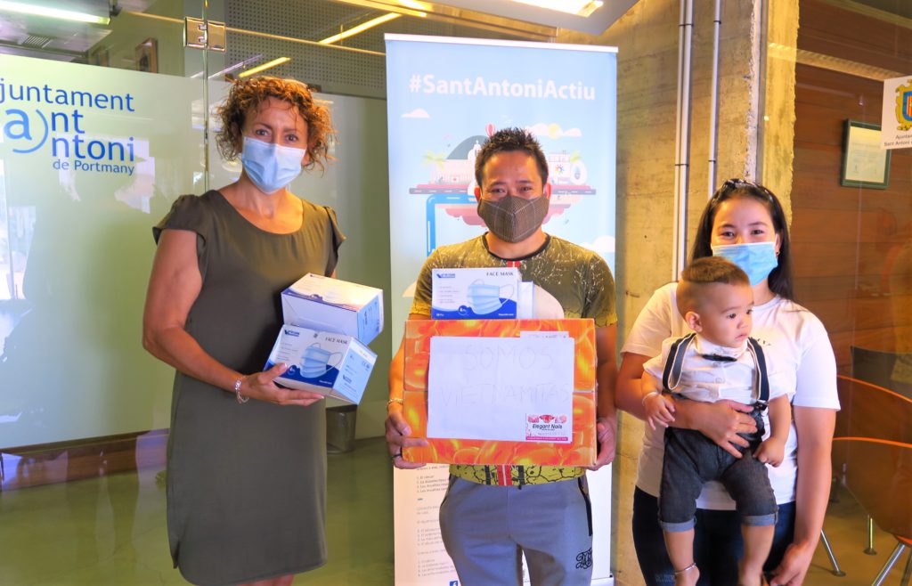 NouDiari / La comunidad vietnamita de Sant Antoni ha hecho entrega esta mañana al Ayuntamiento de Sant Antoni de 800 mascarillas para repartir entre la Policía Local, Protección Civil, Cáritas y el Centro de Salud de Sant Antoni.