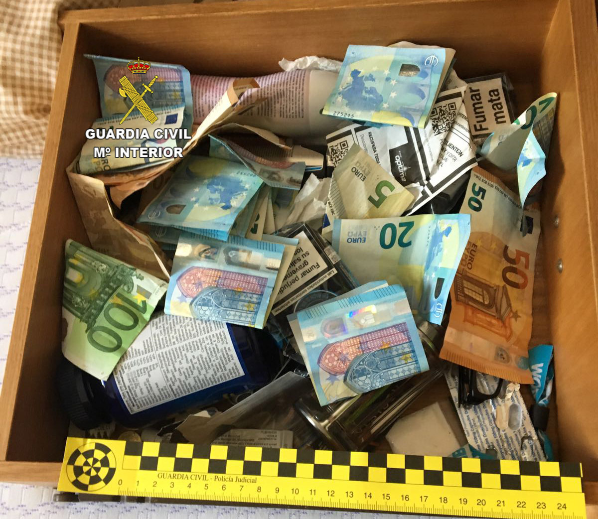 Asimismo se han intervenido 280 libras esterlinas y 31.905 euros en metálico, además de básculas de precisión y útiles para confeccionar las dosis de las diferentes drogas.