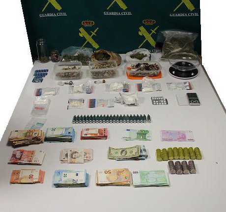 Asimismo se han intervenido 280 libras esterlinas y 31.905 euros en metálico, además de básculas de precisión y útiles para confeccionar las dosis de las diferentes drogas.