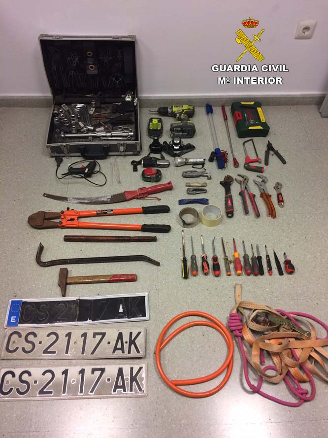 En el momento de la detención, los agentes del Instituto Armado encontraron en el vehículo dos armas cortas simuladas, ropas negras, cintas adhesivas para ocultar las luces posteriores del vehículo, multitud de herramientas que podrían ser utilizadas para el forzamiento de puertas y ventanas, además de una cantidad de droga que permitió investigarles por un delito de tráfico de drogas y por la comisión de distintos robos en la isla.