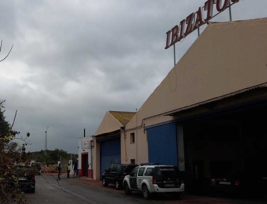 Tres agentes vigilan la puerta del club, ubicado junto a la nave de la compañía Ibiza de transporte Ibizatours.