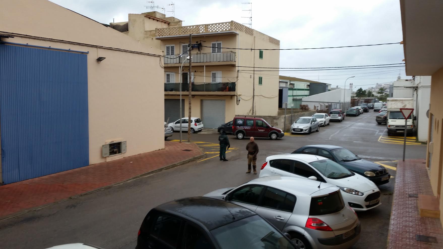 Una veintena de agentes con varios vehículos, entre ellos dos todoterrenos y un monovolumen, se encuentran en la zona, cerrada al tráfico mientras se realiza el registro.