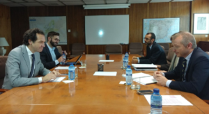 La reunión entre el conseller de Territorio, Energía y Movilidad, Marc Pons, y el director general de Energía y Cambio Climático, Joan Groizard, con el secretario de Estado de Energía, Daniel Navia.