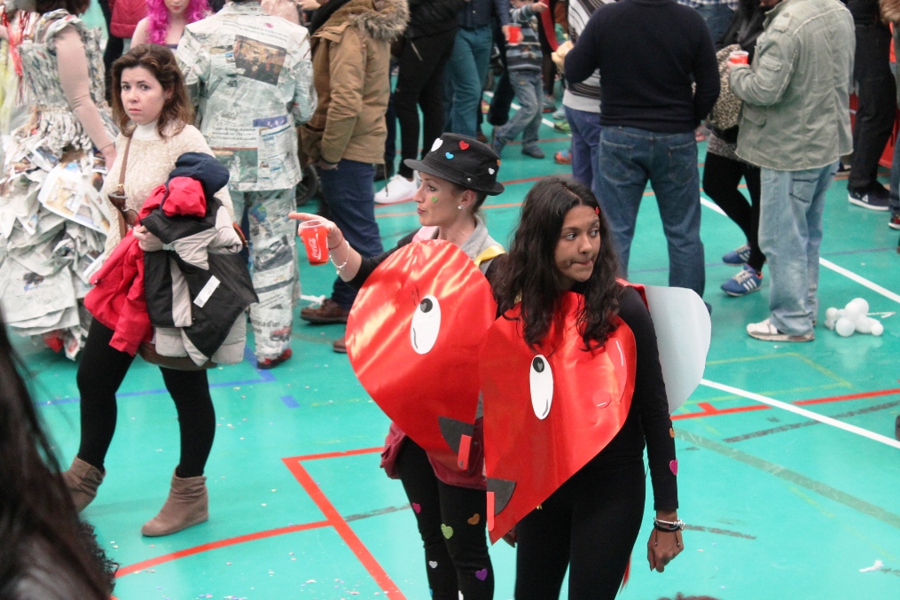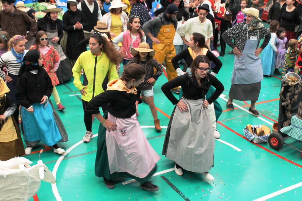 Tras la rúa el personal ha ido entrando en el módulo polideportivo del IES Marc Ferrer que se ha quedado pequeño por la gran cantidad de participantes y espectadores, con muchas ganas de fiesta. Dentro del recinto un jurado totalmente femenino, que a uno le ha hecho exclamar ‘eso ya no es paridad ni ná de ná sino feminismo a ultranza’, pasaba revista de los disfraces, el diseño, el trabajo, las coreografías caso de que las hubiere, en fin una multitud de detalles que muy seriamente anotaban en sus papeles.
