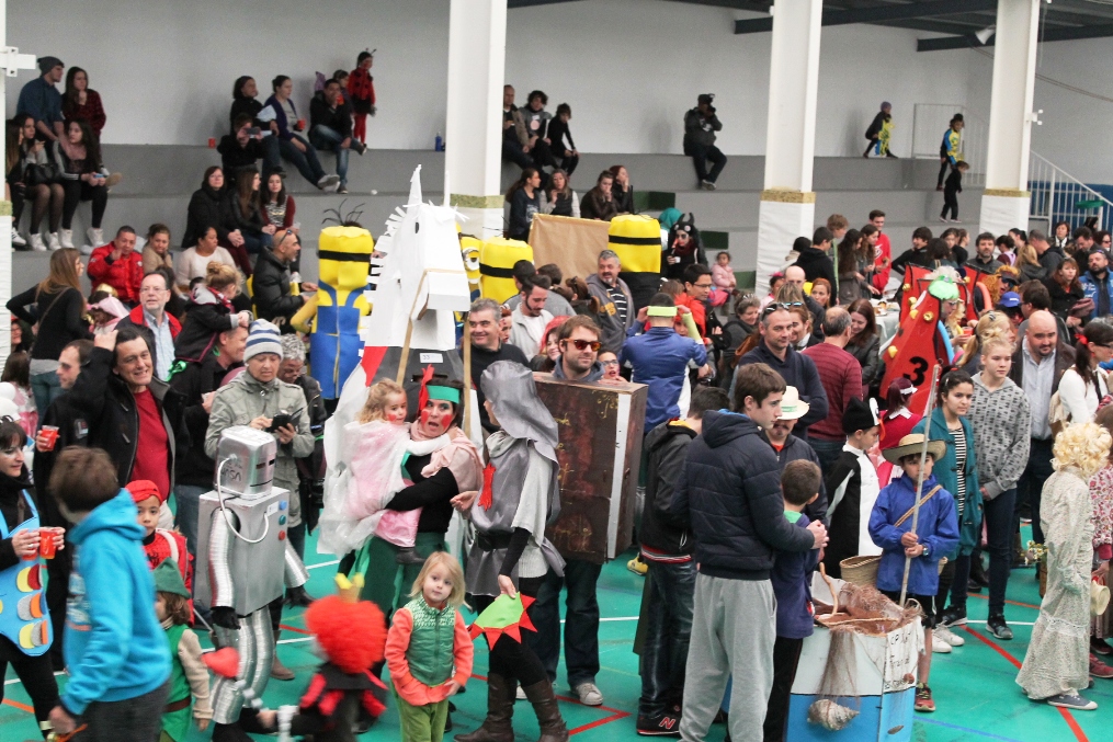 En esta ocasión había hasta seis caballos presentes en la rúa, hecho absolutamente inusual y más lo era el hecho de que los jinetes eran en su mayoría, muy jóvenes. Pero también había cosas lógicas, las de moda, desde los Minions, los Lego, personajes galácticos fueron unos de la NSA y otros de Stars Wars, y esos disfraces agradecidos y desenfadados de brujas, pasotas, ochenteras, malas muy malas mujeres, lapiceros, personal subida en una montaña rusa, princesas, hadas, tortugas ninja, transformers, uvas de buen ver y algunos disfraces especialmente logrados como el de un grupo que iban vestidos con papel de periódico, pero con una elegancia exquisita que les ha hecho ganar el premio en su categoría.