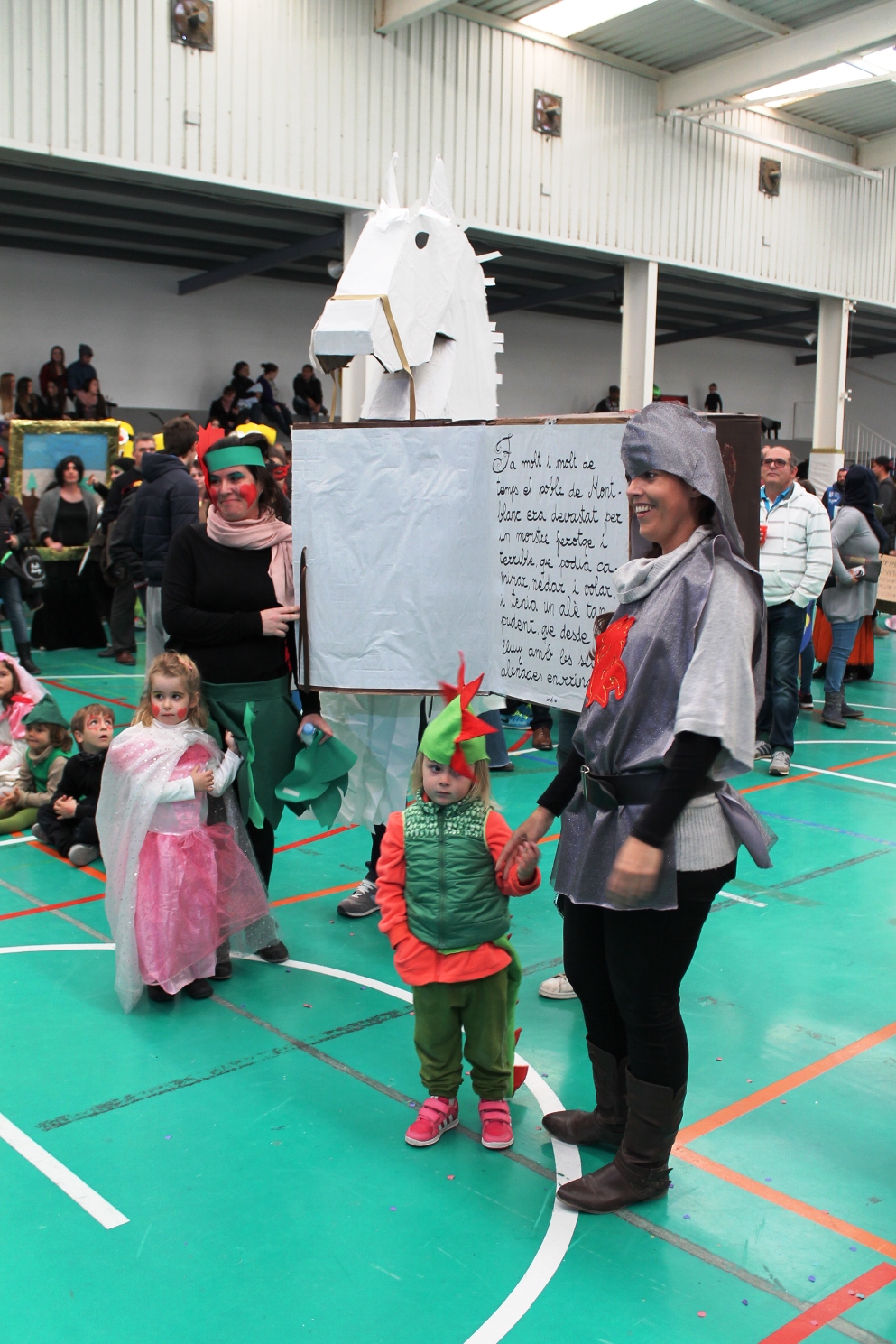Tras la rúa el personal ha ido entrando en el módulo polideportivo del IES Marc Ferrer que se ha quedado pequeño por la gran cantidad de participantes y espectadores, con muchas ganas de fiesta. Dentro del recinto un jurado totalmente femenino, que a uno le ha hecho exclamar ‘eso ya no es paridad ni ná de ná sino feminismo a ultranza’, pasaba revista de los disfraces, el diseño, el trabajo, las coreografías caso de que las hubiere, en fin una multitud de detalles que muy seriamente anotaban en sus papeles.