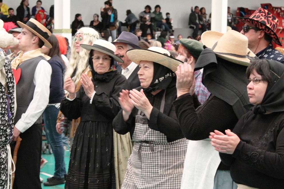 Mientras se comenzaba a comer, gratis para los disfrazados, de pago para los espectadores, DJ Pharma amenizaba el sarao como antes lo había hecho una banda local y mientras unos comían, otros bailaban o se arrumbaban hacia la barra del bar de la APIMA. Luego los premios, más música, más baile, más jajajá y más jijijí y poco antes de las cinco de la tarde, el diluvio…