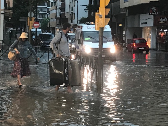La cara de los turistas era todo un poema. Sobre todo la de aquellos que iban cargados con maletas y se dirigían desde el puerto a la estación de autobuses. No daban crédito de que con lo que había llovido tuvieran que sumergirse en los pasos de peatones para poder cruzar, equipaje en ristre, cualquier calle.