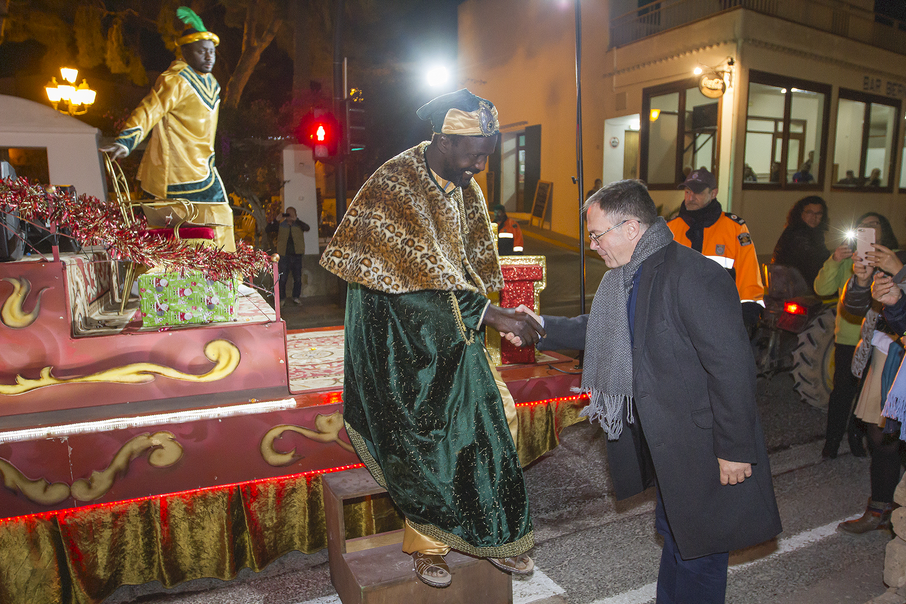 Sus Majestades han recibido a su llegada la cálida acogida de la chiquillería, que les esperaba, impaciente, junto a la iglesia de Sant Josep para unirse a la comitiva real y recoger, posteriormente, los presentes que venían empaquetados desde Oriente.