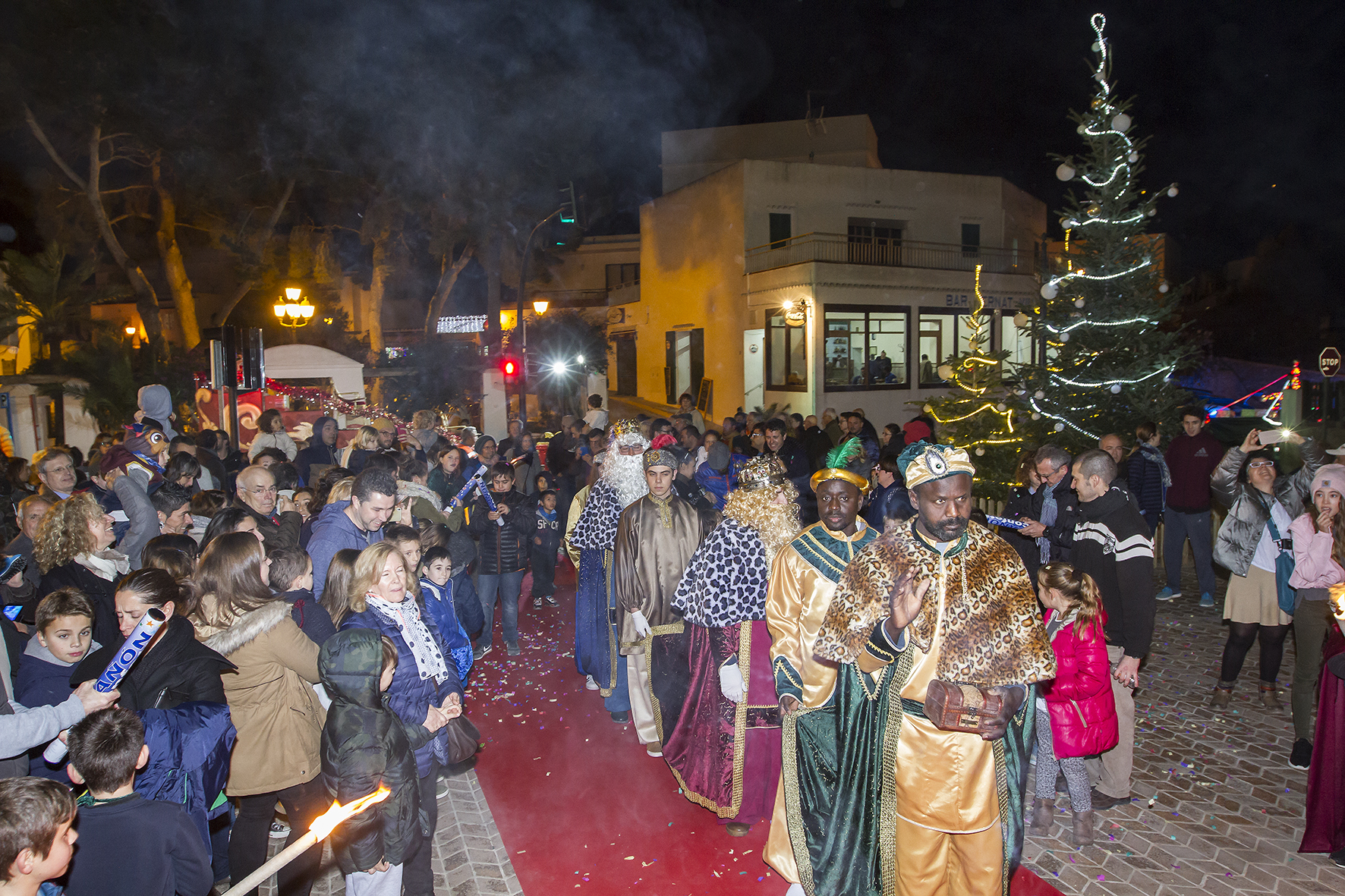 En su camino, Melchor, Gaspar y Baltasar han repartido, junto a sus ayudantes, hasta 350 kilos de caramelos entre todos los menores que han salido a la calle para darles la bienvenida. Más tarde han llegado también a Sant Agustí y a Sant Jordi. Este sábado, a las seis, estarán en es Cubells.