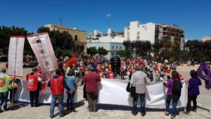 No han faltado menciones a los meses sin cobrar que llevan los empleados de la subcontrata que se encarga de la empresa del aeropuerto o a la falta de recursos humanos y a las malas condiciones laborales que denuncian los agentes de la Policía Local de Vila. Y, como hilo conductor, se han relacionado estos recortes en la calidad de vida de los asalariados «con la corrupción del Partido Popular».