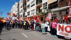 Alrededor de 300 personas han caminado por las calles de Vila, desde ses Figueretes hasta es Portal Nou, mostrando pancartas en contra de la reforma laboral y las políticas contrarias al Estado del Bienestar del Partido Popular, lanzando proclamas en contra del gobierno de Mariano Rajoy y la corrupción de su grupo