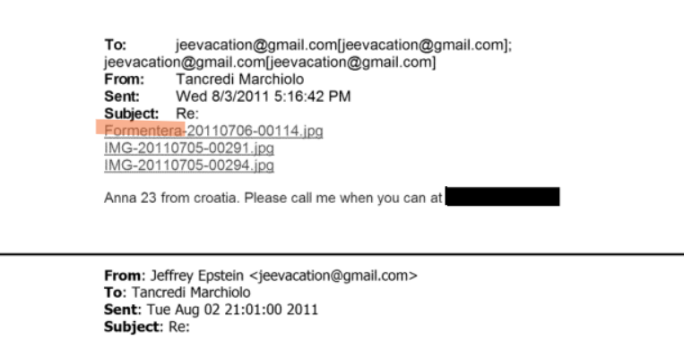 Sobre esta foto enviada por Marchiolo a Epstein, Formentera-20110706-00114.jpg, solo es posible hacer preguntas que difícilmente obtendrán una respuesta. Sobre Anna de Croacia solo es posible hacer preguntas que difícilmente tendrán una respuesta.