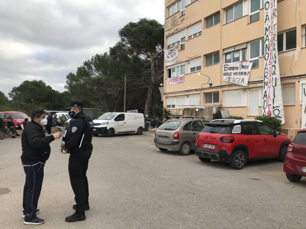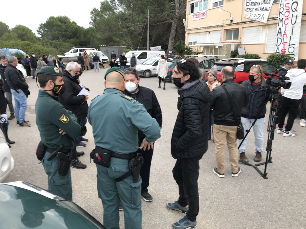 Agentes de la Policía Local de Sant Josep han llevado las notificaciones de desalojo a las viviendas, mientras que la Guardia Civil también ha desplazado varias unidades para velar por el orden. Algunos agentes han dialogado con calma con los vecinos para tratar de que todo el proceso se desarrollase de la manera más pacífica posible.