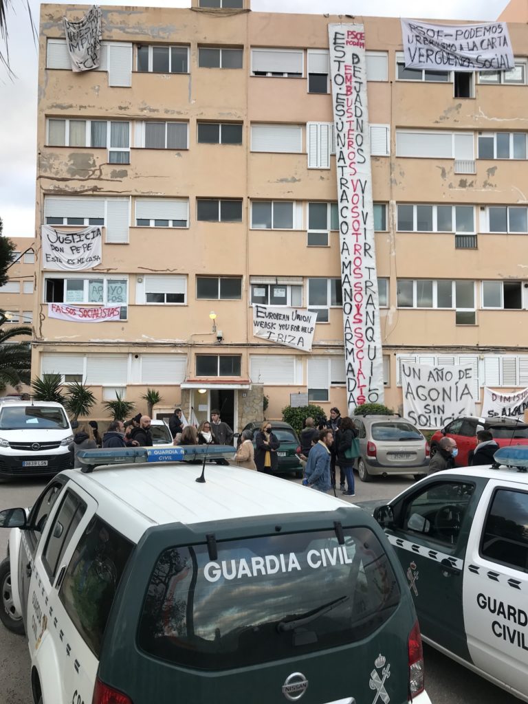 A pesar de la rabia y la tensión, los vecinos han ido desalojando sus casas durante la mañana de manera pacífica y sin mediar violencia o altercados. Tan solo alguna vecina ha perdido los nervios y ha soltado algunos improperios contra el alcalde de Sant Josep, Ángel Guerrero, al que muchos vecinos responsabilizan hoy de esta manera de actuar «desalmada». «Se va de vacaciones mañana y no ha tenido la decencia de aparecer por aquí y dar la cara», afirmaba.