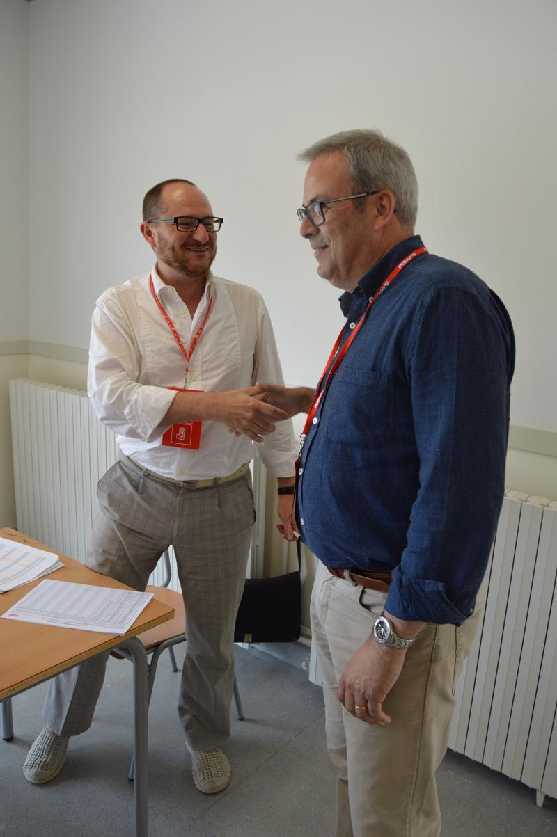 Vicent Torres saludando a los apoderados e interventores socialistas.