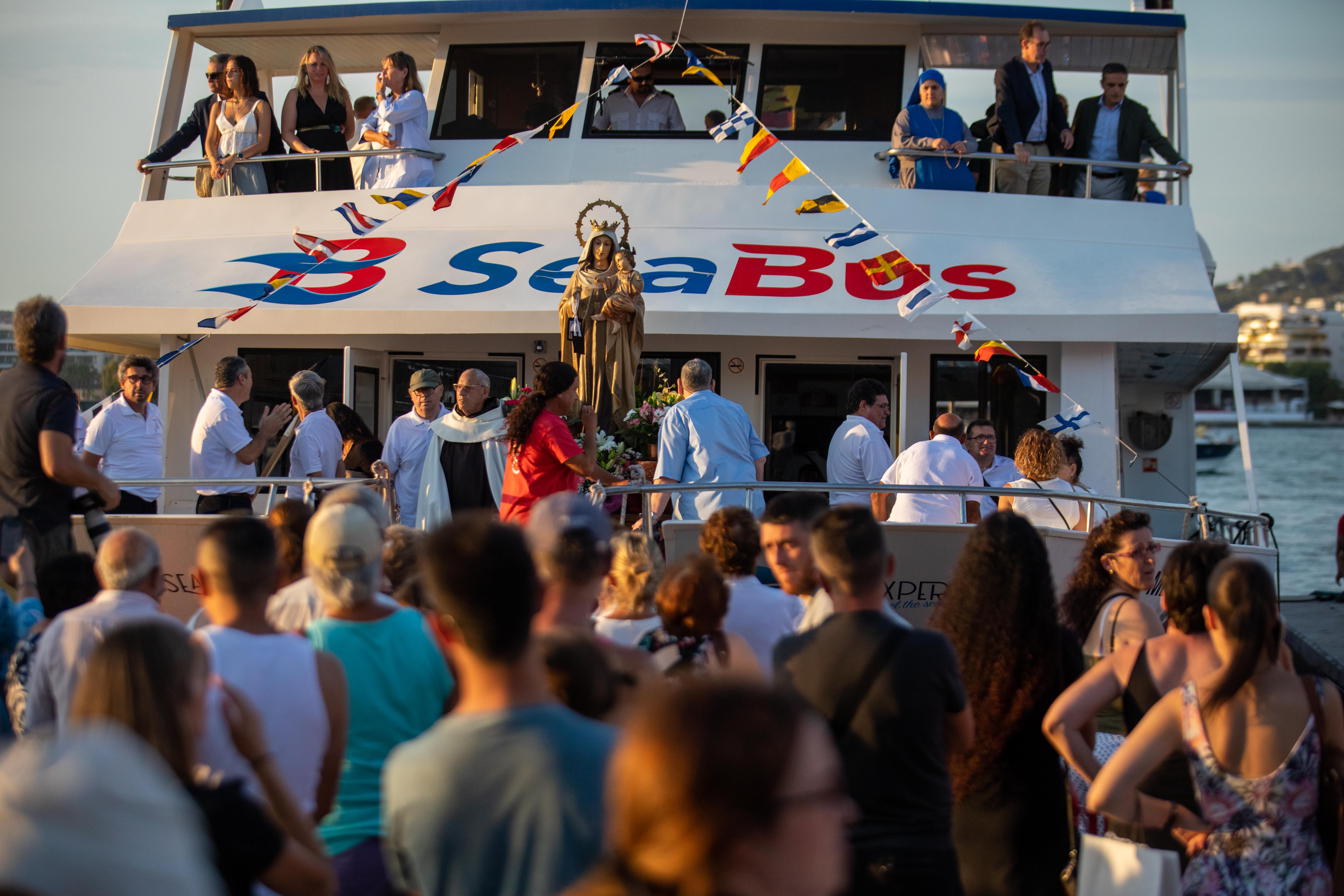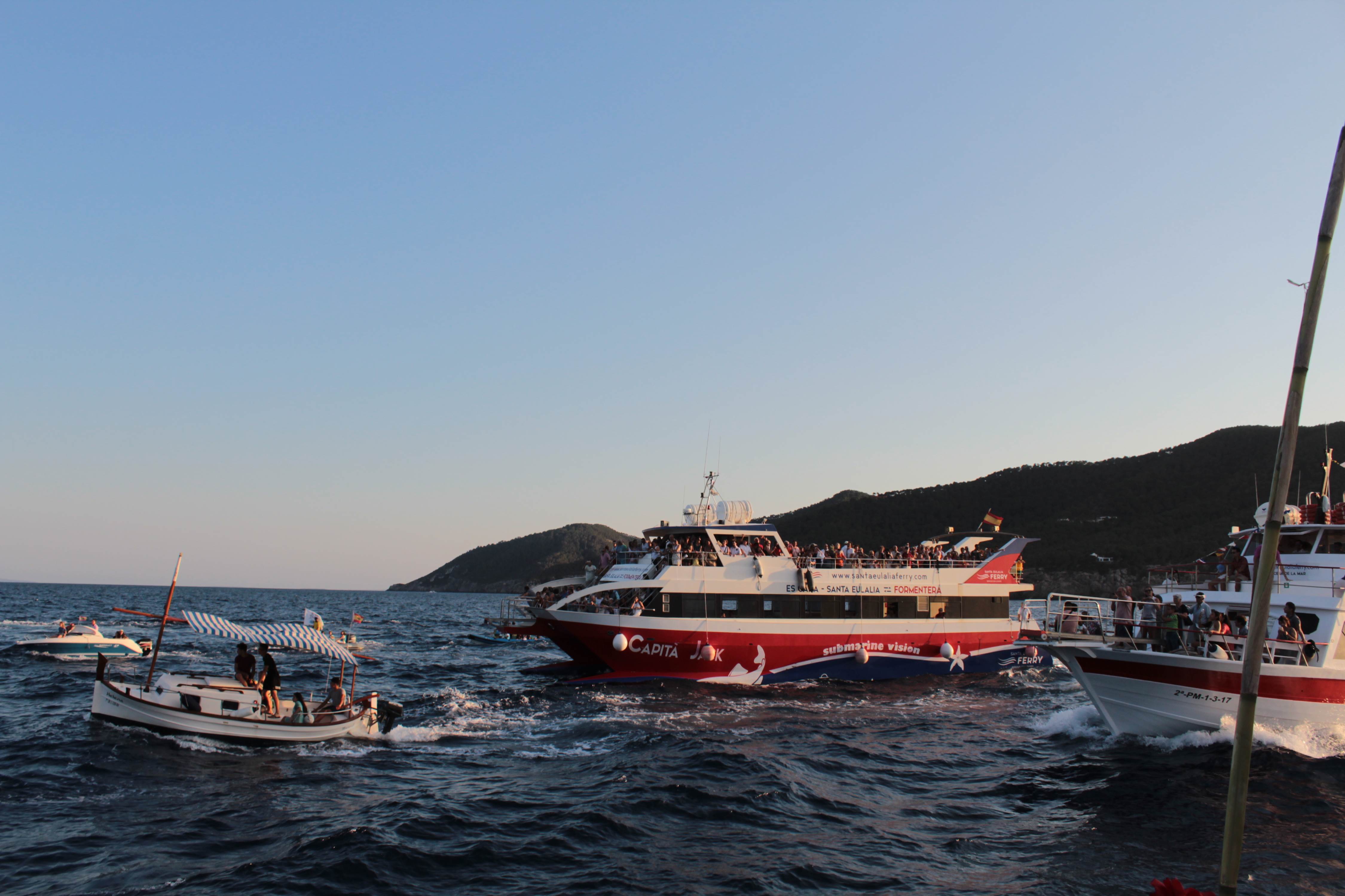 La alcaldesa Carmen Ferrer, una buena parte del equipo de gobierno y algunos concejales del PSOE, entre otras autoridades, han participado en las actividades. Un millar de personas han subido a bordo de uno de los cinco barcos de pasajeros de la empresa Santa Eulària Ferry, mientras que centenares de vecinos han esperado en el paseo marítimo para seguir con la fiesta.