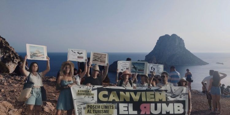 La plataforma Canviem el rumb protagoniza una protesta informativa en el «masificado» mirador de Es Vedrà