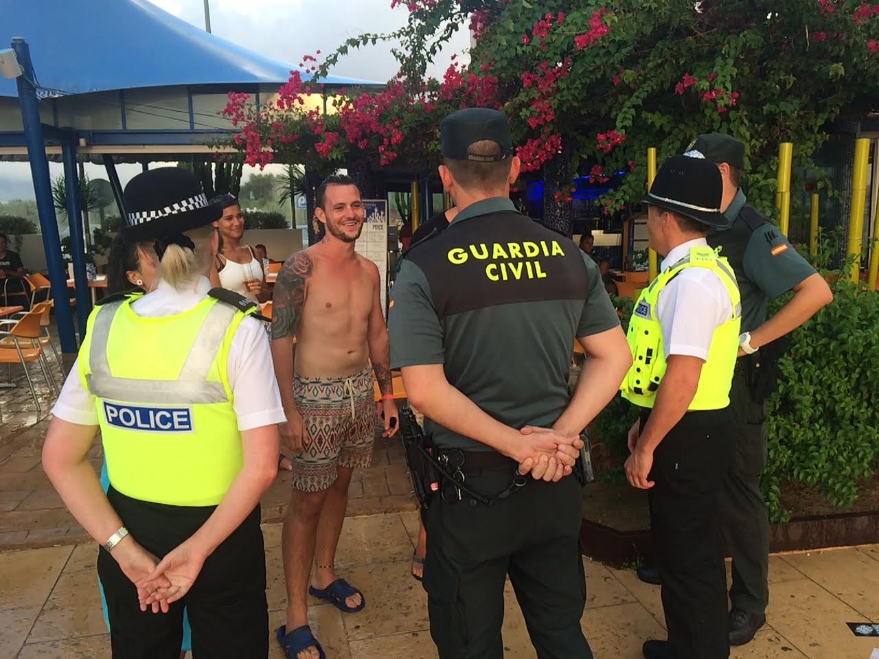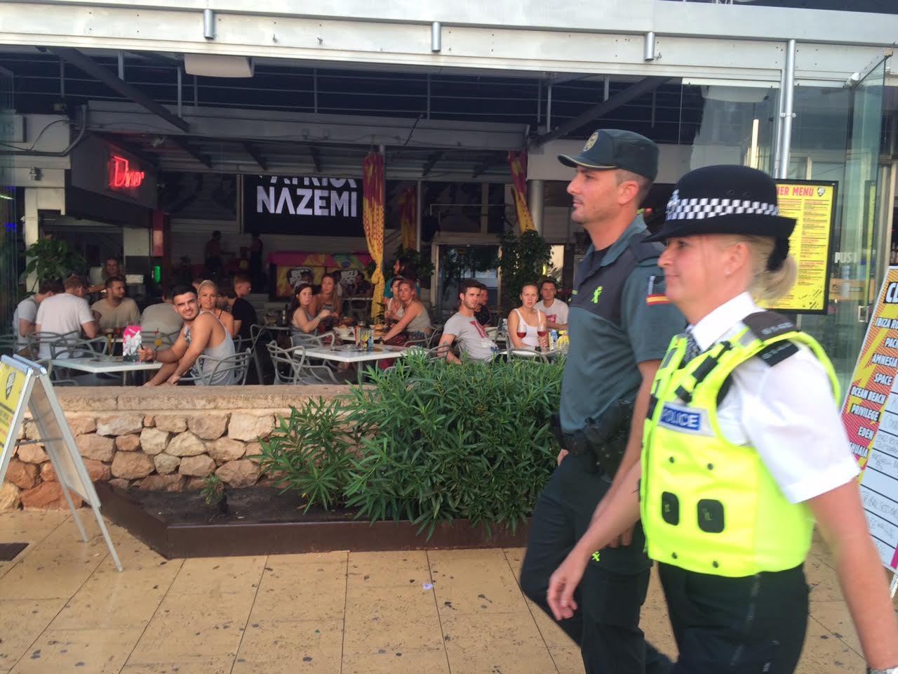 Por la tarde, los ‘bobbies’, acompañados de varios agentes de la Guardia Civil, han realizado un paseo por s’Arenal, en el que no han dudado en hablar con algunos de sus compatriotas. Otros, por contra, han optado por quedarse sentados en el bar observándolos ojipláticos. Una señora que paseaba, ha espetado: «Lo que tienen que hacer es pasear por la noche por el West y no por aquí».