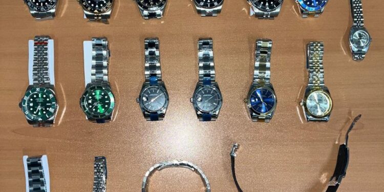 Tras presenciar el hecho, en el cual se pretendía la venta de una falsificación de un reloj de alta gama por un precio que oscilaba entre los 90 y los 110 euros, los agentes entraron en acción. El vendedor tenía su vehículo con las puertas abiertas y una gran cantidad de bolsas en su interior. Esto motivó la realización de un registro del automóvil en el que se halló dicho material, que parecía falsificaciones de varias marcas reconocidas, réplicas o reproducciones no autorizadas de marcas registradas, entendiendo los agentes que podrían vulnerar derechos de la propiedad industrial.