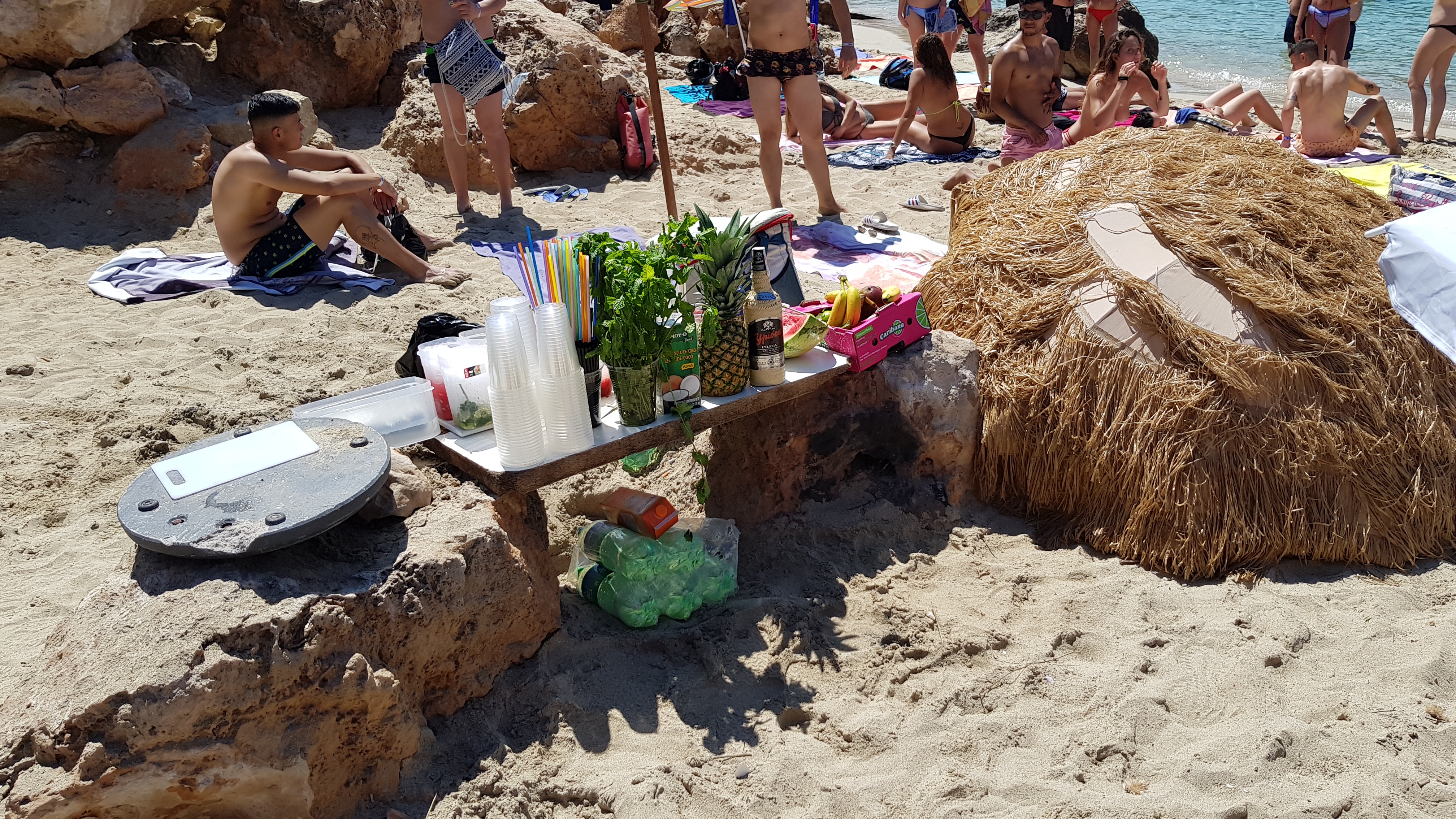 El miércoles las actuaciones se trasladaron a Cala Saladeta donde los agentes interpusieron cuatro denuncias por venta ambulante e intervinieron 15 litros de licor de alta graduación, 40 latas de refrescos, 50 kilos de hielo, 25 barras de pan, 19 pareos, 20 empanadas y 5 kilos de fruta fresca, entre otros productos. Debido al volumen del material intervenido fue necesario utilizar un vehículo industrial para su traslado.