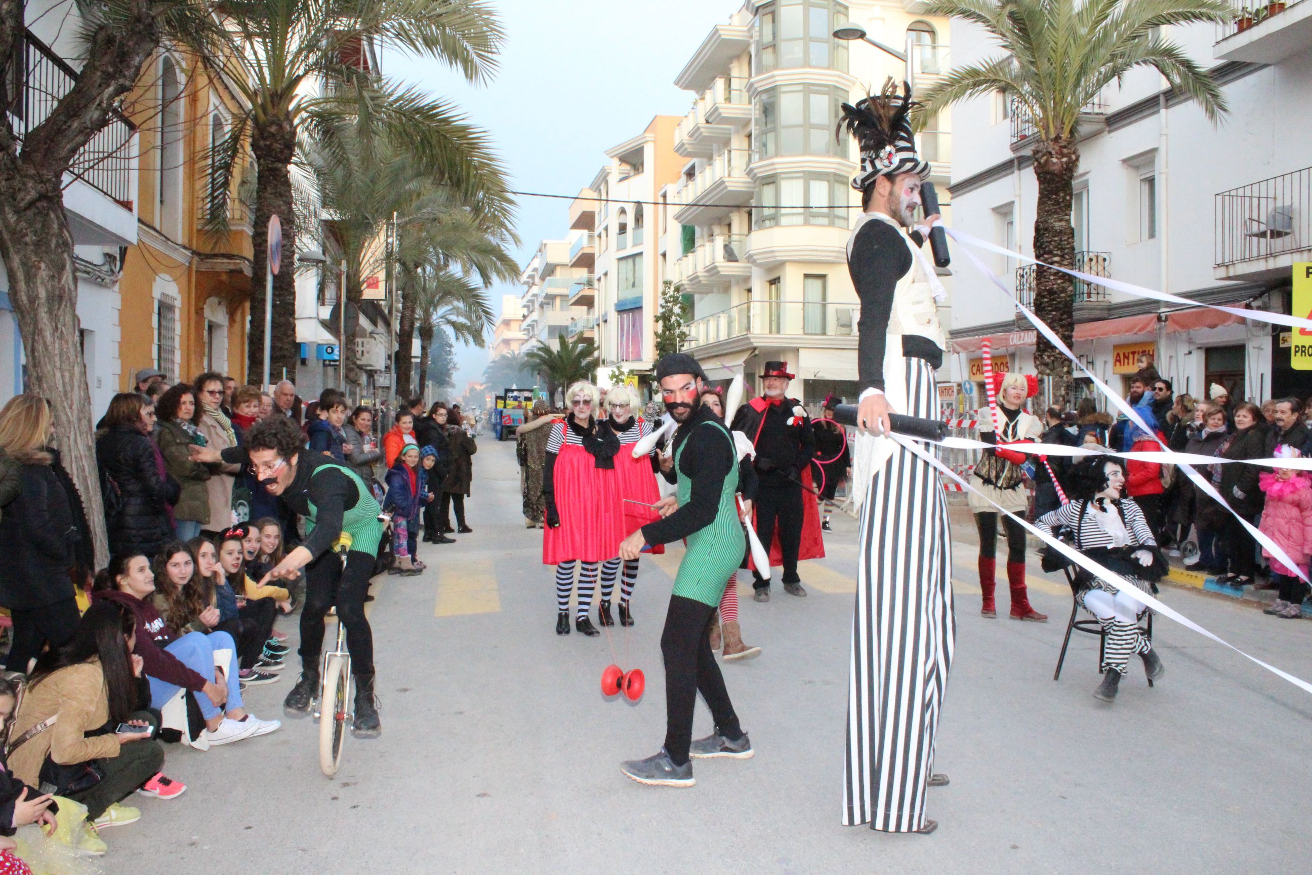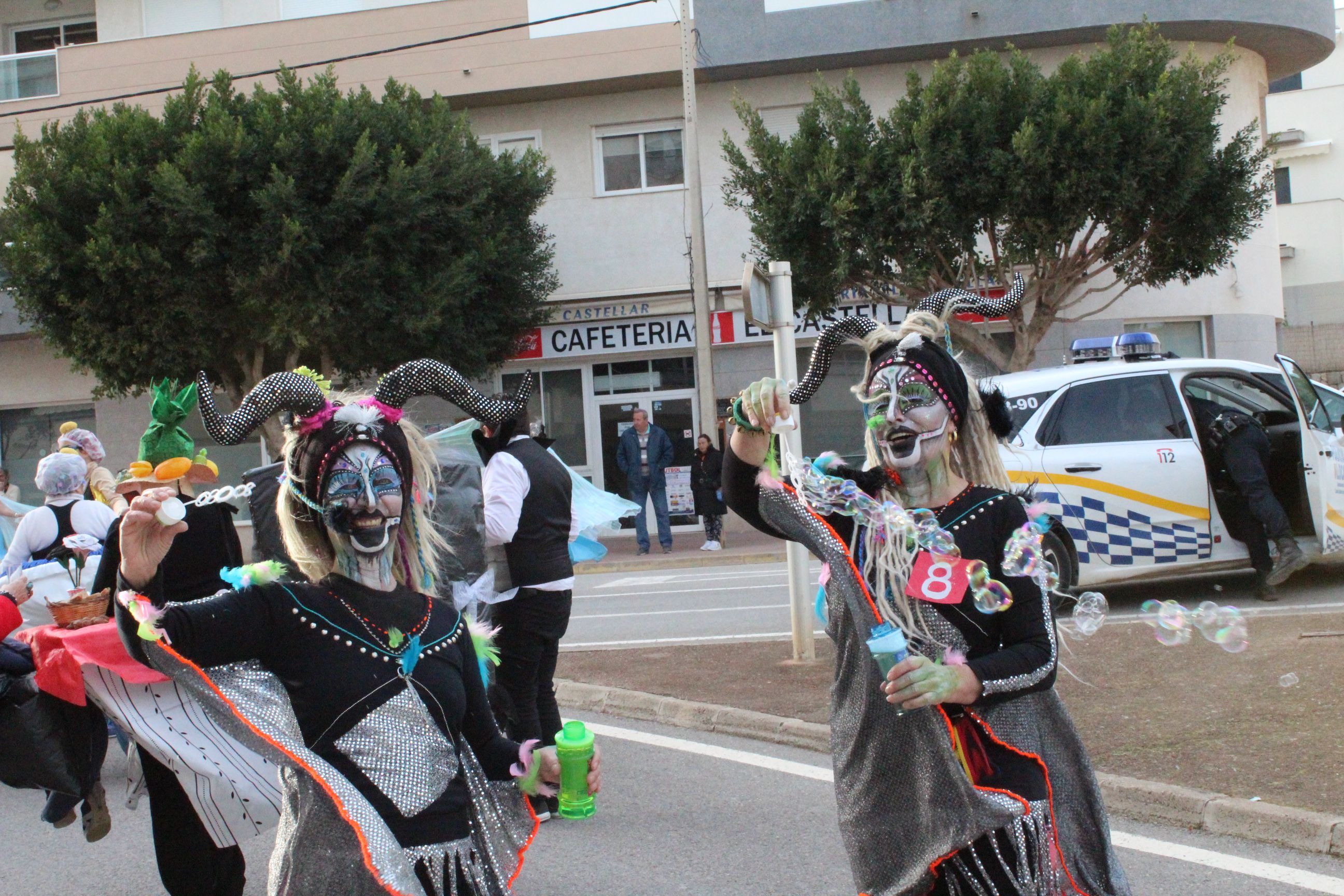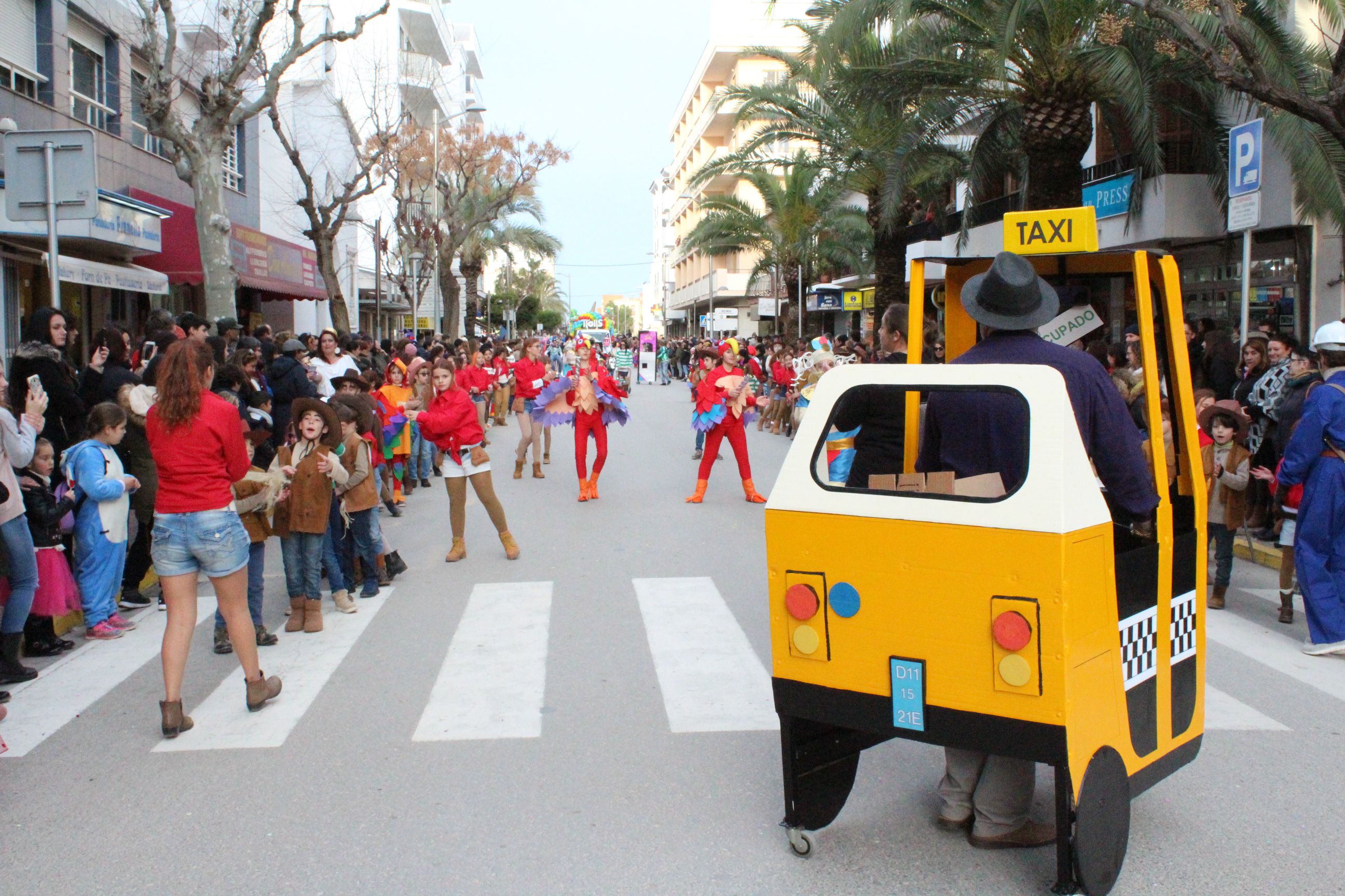 @Noudiari / Un total de 667 personas han participado en la rúa de Santa Eulària, repartidos en nueve comparsas y diez grupos/individuales. El desfile ha comenzado a las 17 horas en la calle César Puget desde donde pasa a la calle José GuaschVich, terminando en la calle Sant Jaume, frente a la plaza de España. La entrega de premios se ha realizado en la carpa situada tras el Ayuntamiento, en el Passeig de la Pau, junto a las paradas de autobuses. Después, la fiesta ha continuado con la actuación de The Frigolos.