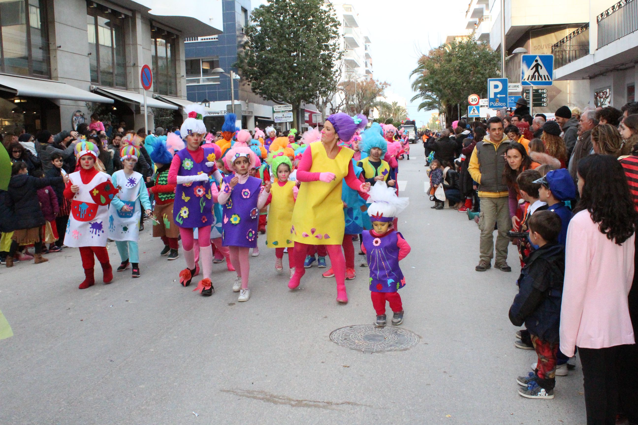 En la categoría de Comparsas Escolares el primer premio de 800 € ha sido para los ‘Transformers’ del CEIP s’Olivera ‘; el segundo premio de 500 € se lo ha llevado el CEIP Sant Ciriac con ‘Esta Odisea es una locura’ y el tercer premio de 400 € lo han conseguido los ‘Trolls’ del CEIP Santa Eulària.