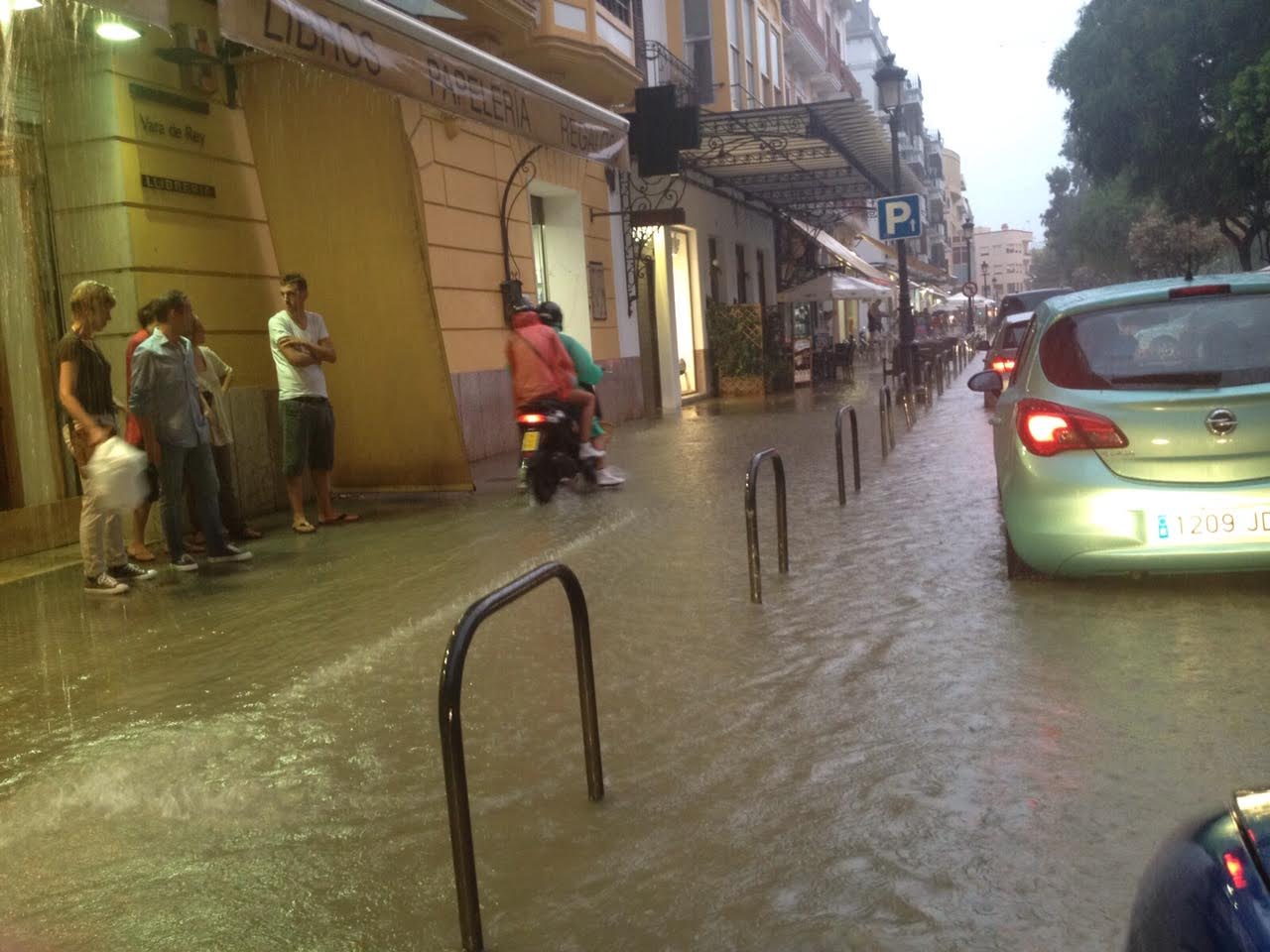 Por desgracia puedo dar fe, en la Calle Juan de Austria, paralela a Vara de Rey, a mansalva. Penoso espectáculo, ver a personas con carrito de bebé rodeados de agua, o a personas muy mayores ayudados por su bastón si saber que hacer.