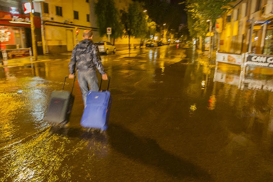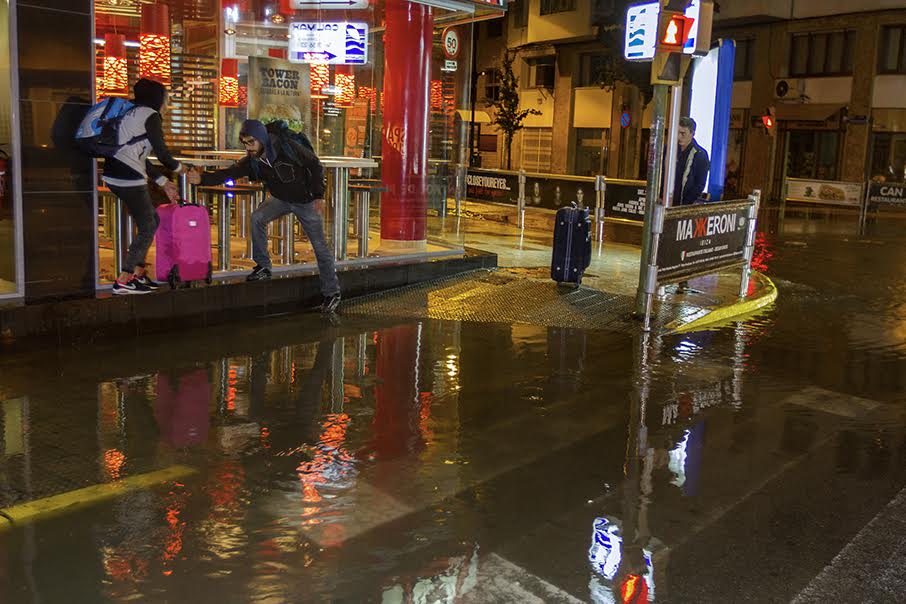 Además, algunas calles de Vila han vuelto a verse amenazas por la gran tromba de agua y varios turistas, maletas en mano, se han visto sorprendidos por grandes charcos.