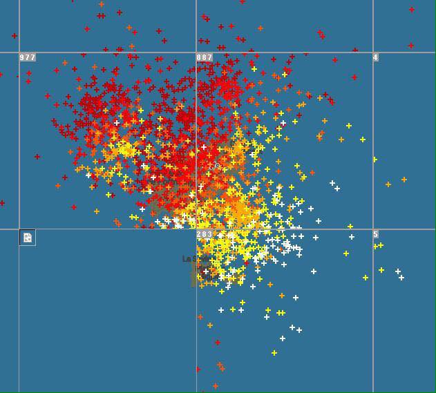 Mapa de los rayos que han caído esta madrugada sobre las Pitiüses. Foto: Ràdio Illa.
