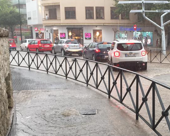 En Vila, el agua, como de costumbre, ha anegado alcantarillas provocando inundaciones en el centro de la ciudad y las rotondas de acceso.