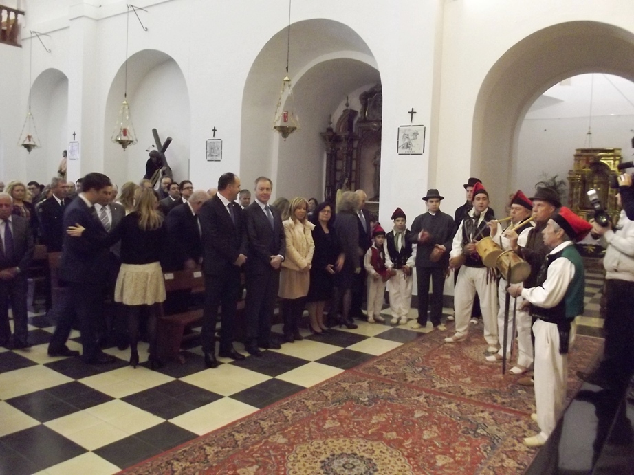 Vicent Marí, Vicent Serra y los alcaldes de todos los municipios, durante la misa.
