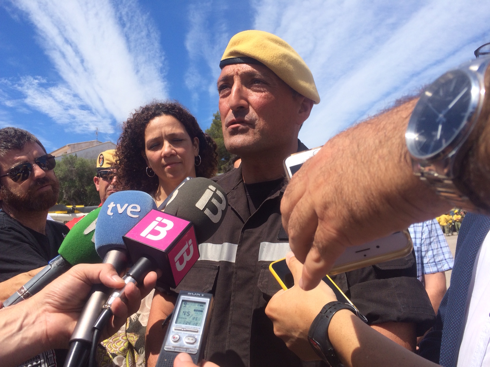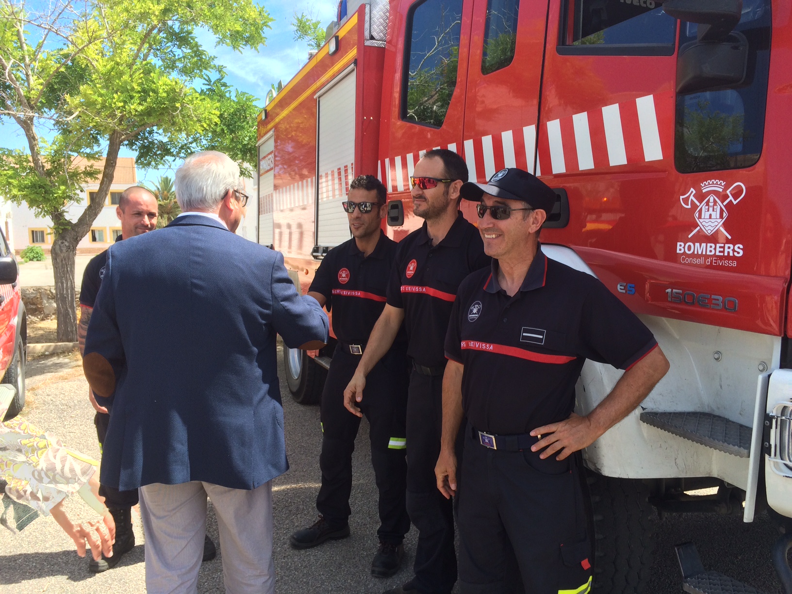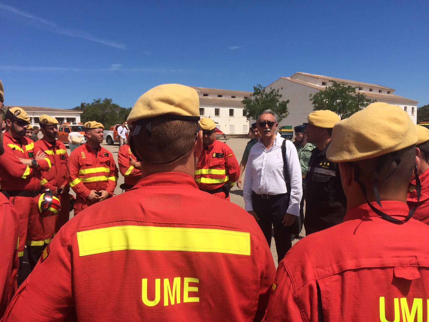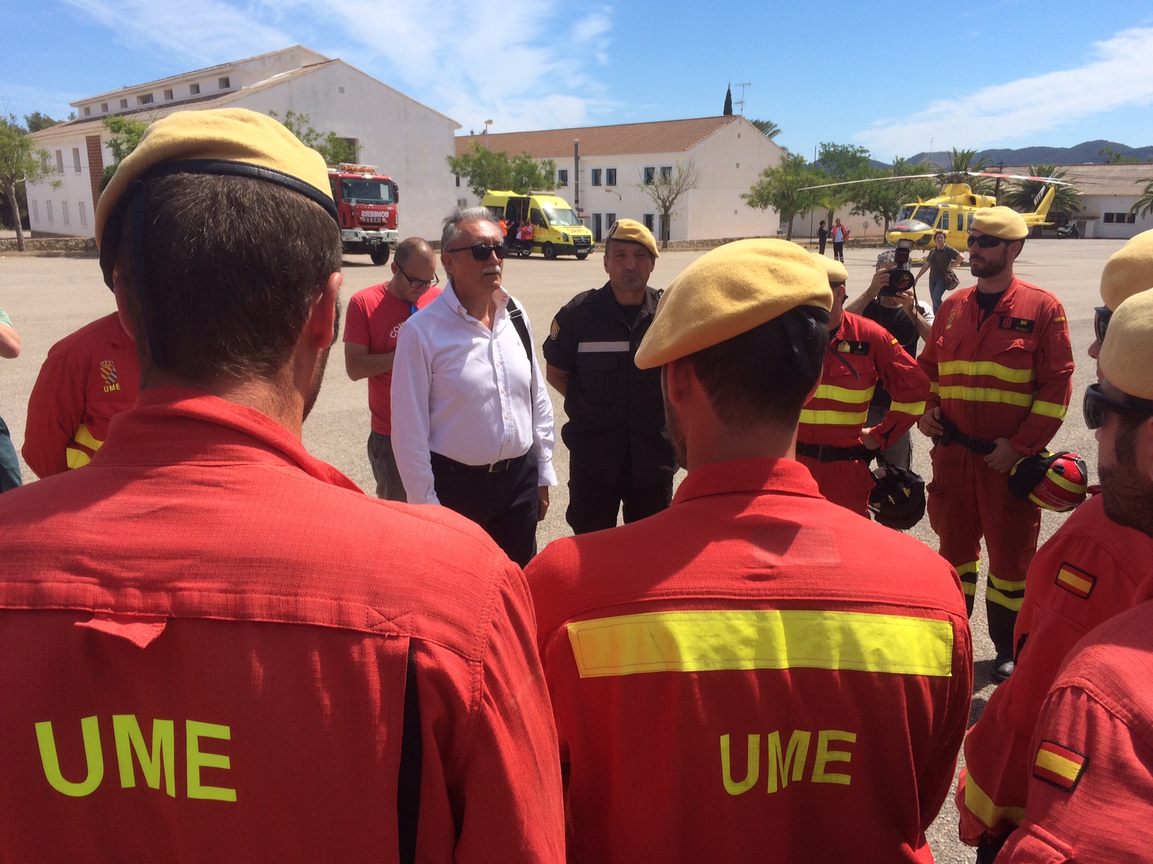 En la presentación, el presidente del Consell d’Eivissa, Vicent Torres, la consellera Catalina Cladera y una amplia comitiva de alcaldes y concejales han saludado a los integrantes de la UME, Ibanat, Bomberos, Cruz Roja, Emergencias y Protección Civil.
