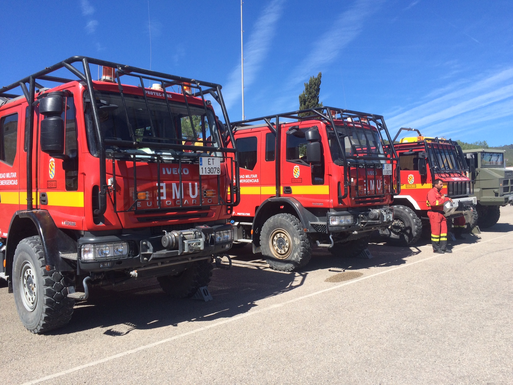 @B.Roselló/ El recinto de Sa Coma ha sido el escenario para la presentación de todos los medios que estarán disponibles este verano en Eivissa en la lucha contra los incendios. La novedad de esta nueva campaña es la incorporación de la Unidad Militar de Emergencias (UME), que contará con tres personas fijas a lo largo de todo el verano y seis vehículos, según ha explicado el teniente coronel Javier Moreno, jefe del III Batallón de la Unidad Militar de Emergencias.