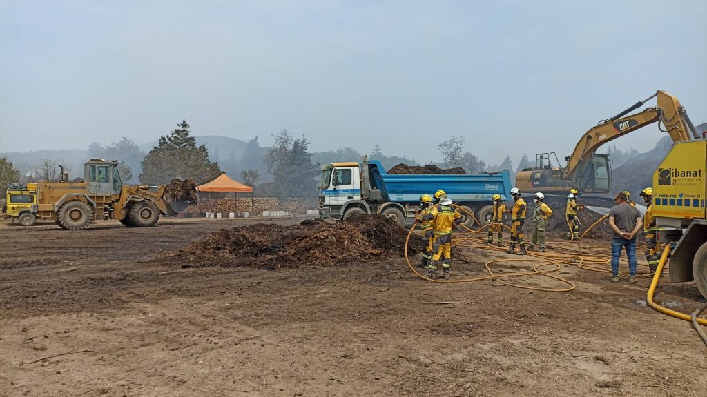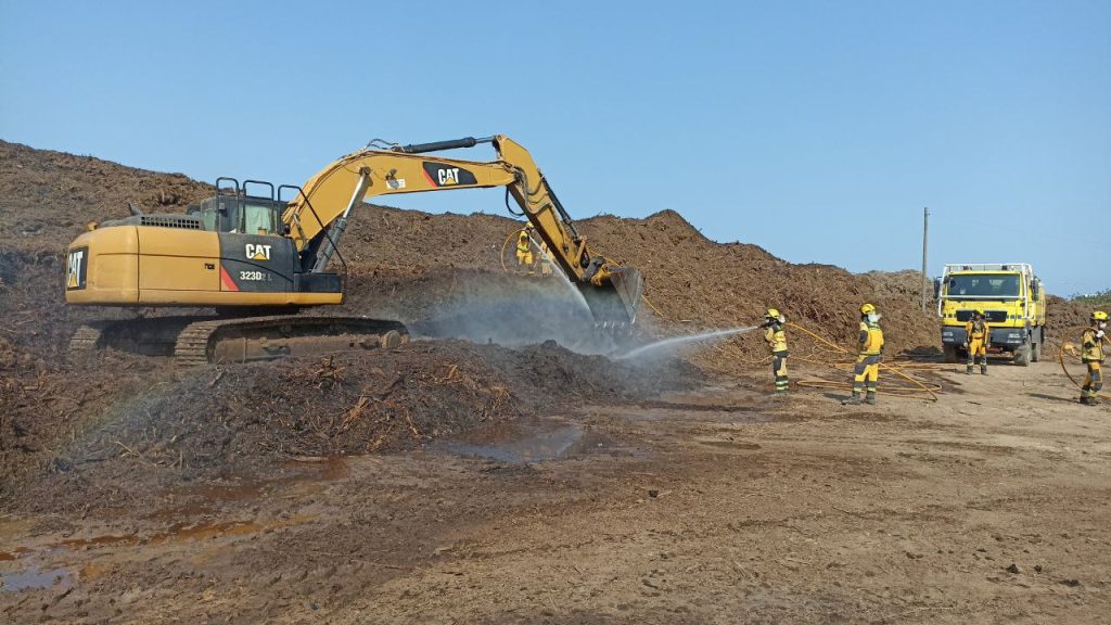 Los trabajos a día de hoy consisten en la retirada del material que está en combustión con maquinaria para dejarlo en un terreno al lado, de forma que queden montones separados que se enfríen. Al mismo tiempo que el material se va retirando, se refresca con agua.