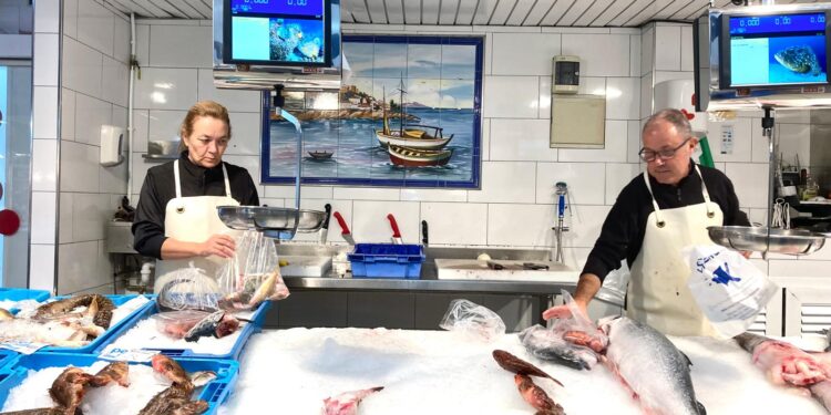Para Pescados María y Vicente es imprescindible el pescado local, y en estos días hacen equilibrios para no perder a la clientela leal, prefiriendo tener menos pescado en general sobre el mostrador, a traer más pescado de fuera con precios demasiado elevados.