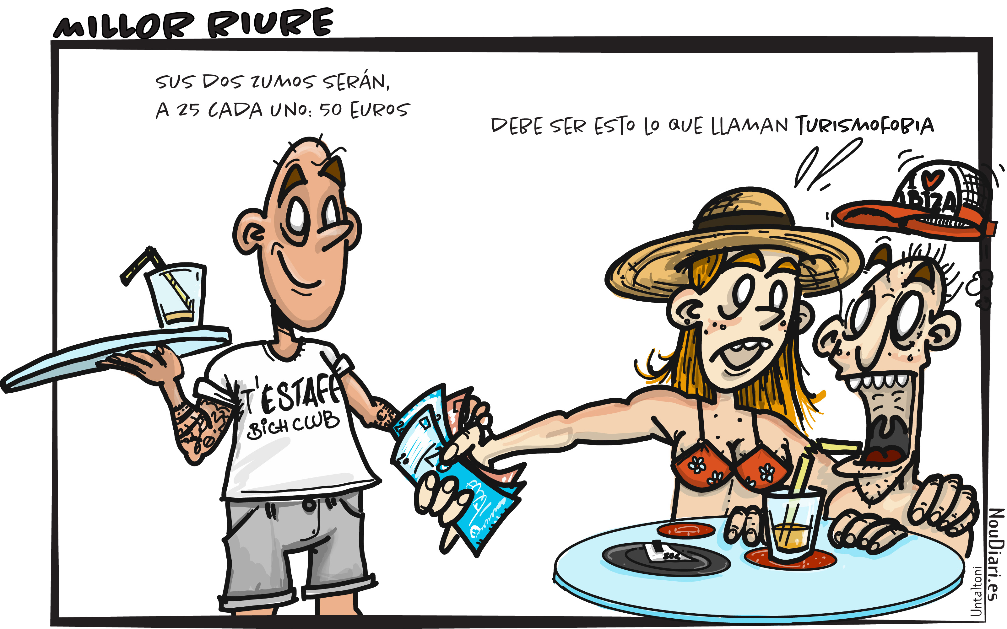 @Noudiari / La viñeta que esta semana nos trae nuestro humorista gráfico Untaltoni en su sección ‘Millor Riure’, caricaturiza los altos precios de la isla.