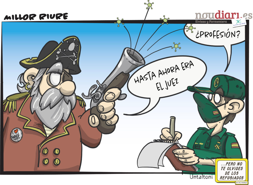 NouDiari / El humorista gráfico Untaltoni dedica su viñeta al ya ex juez de paz de Formentera, quien fuera detenido por hacer trabajar a empleados que habían dado positivo en coronavirus en su restaurante El Pirata.